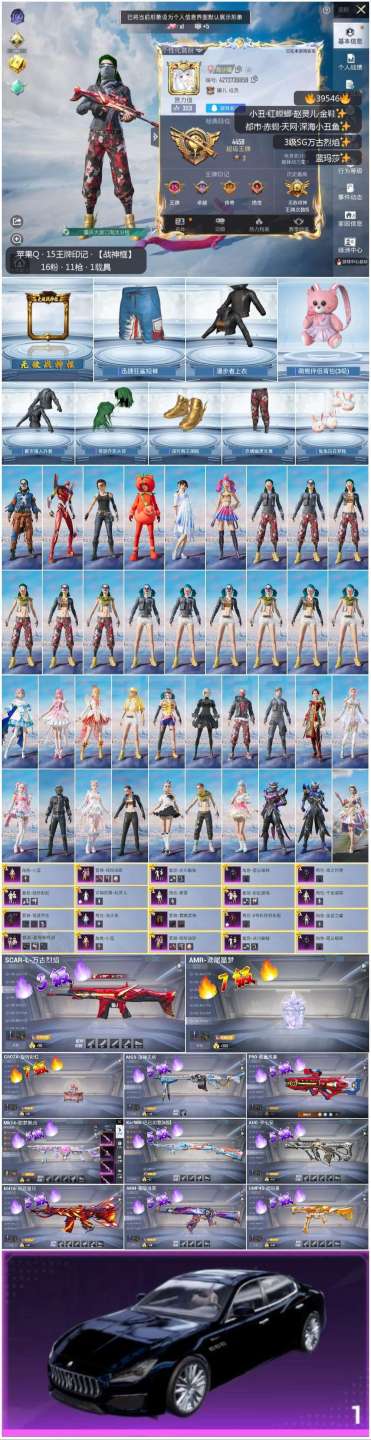hs39546 苹果手Q-15王牌印记-有战神框-16粉装-11特效枪-1载具-83549热力值-1