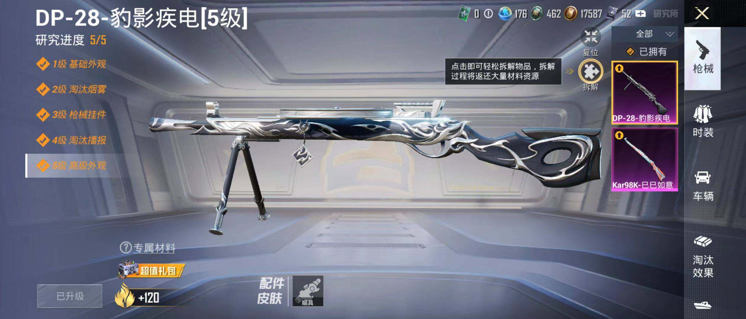 【粉色枪皮等级】:Kar98K-巳巳如意(五级),DP-28-豹影疾电(五级)