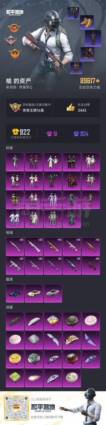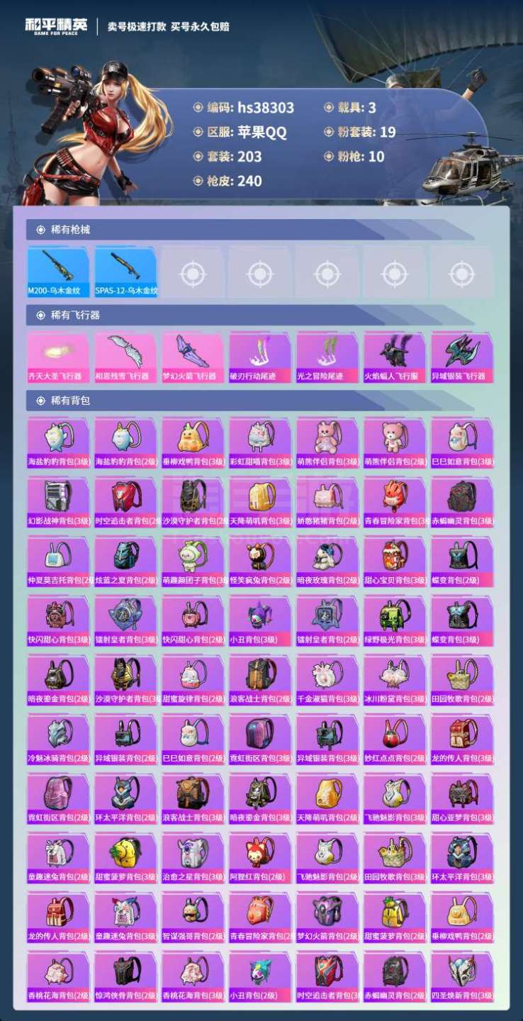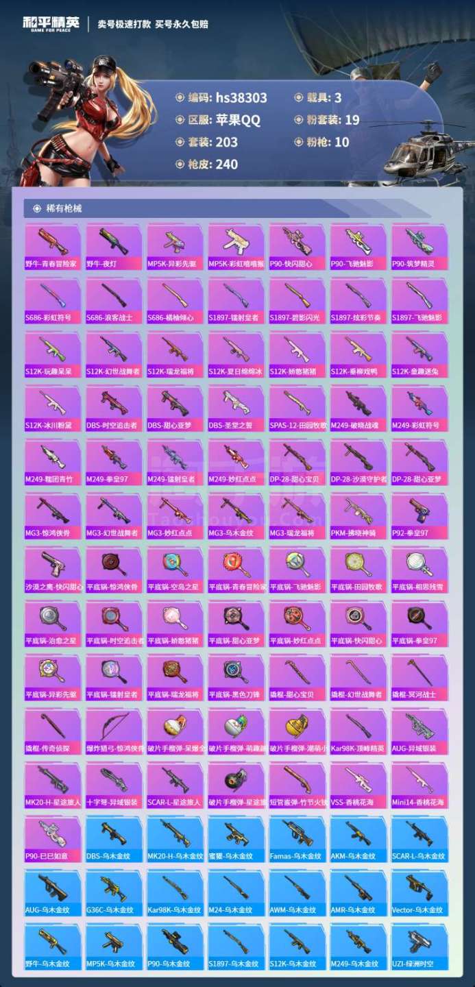 hs38303 苹果手Q-19王牌印记-19粉装-10特效枪-3载具-89677热力值-203套装-