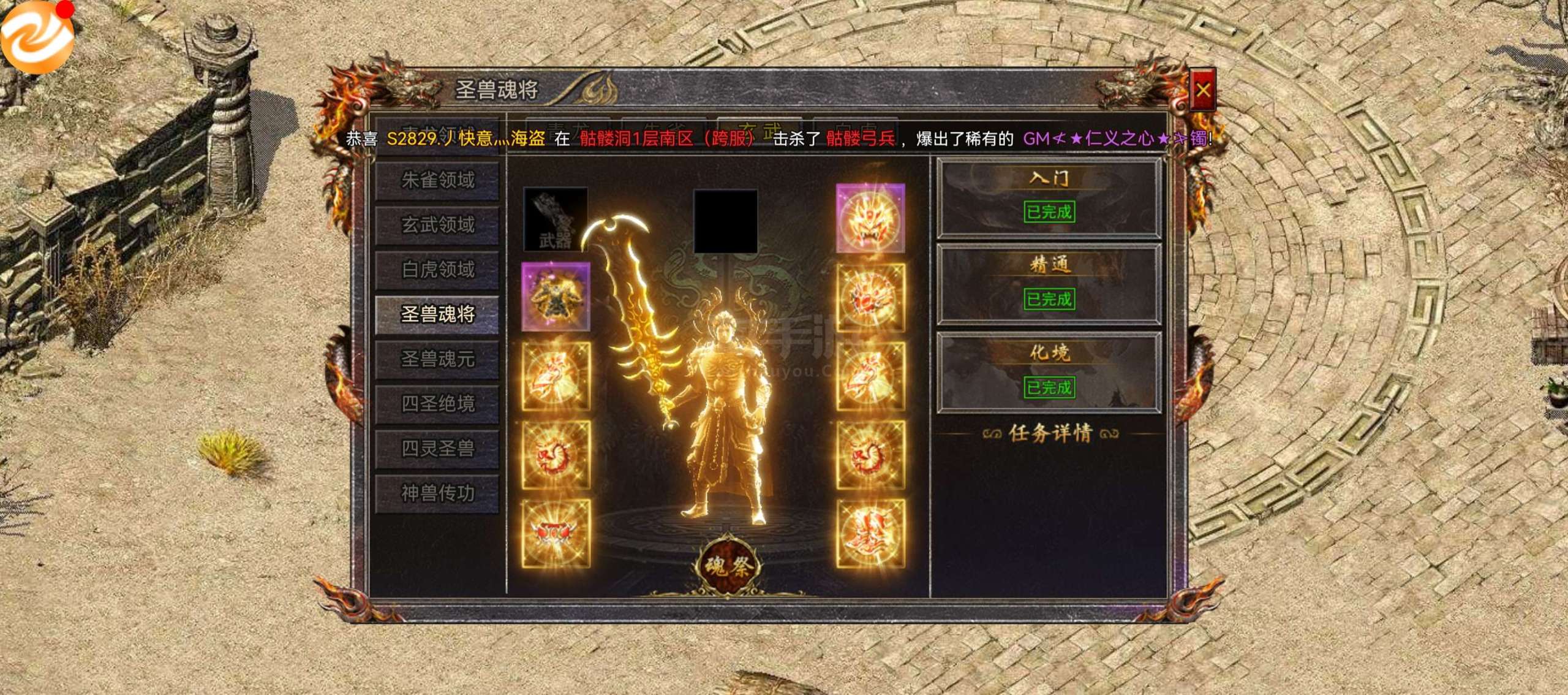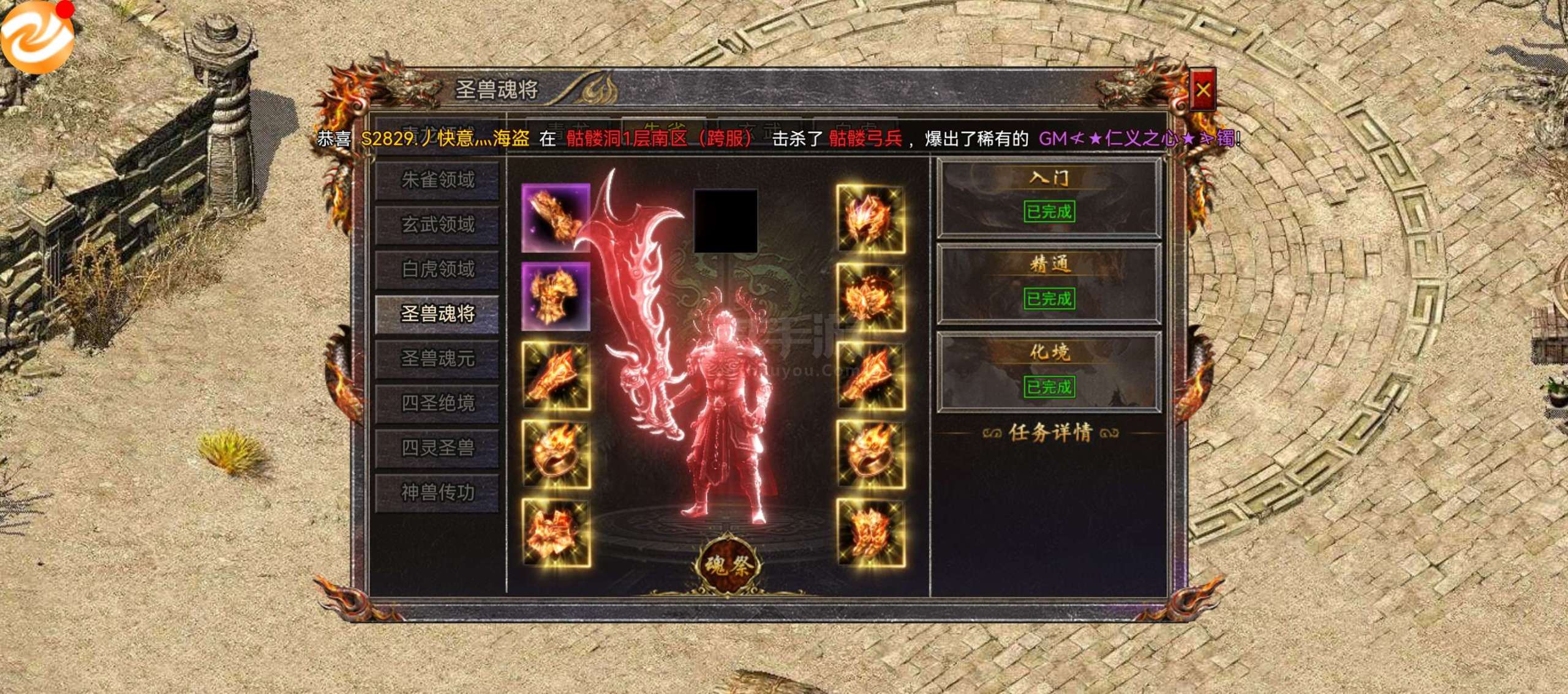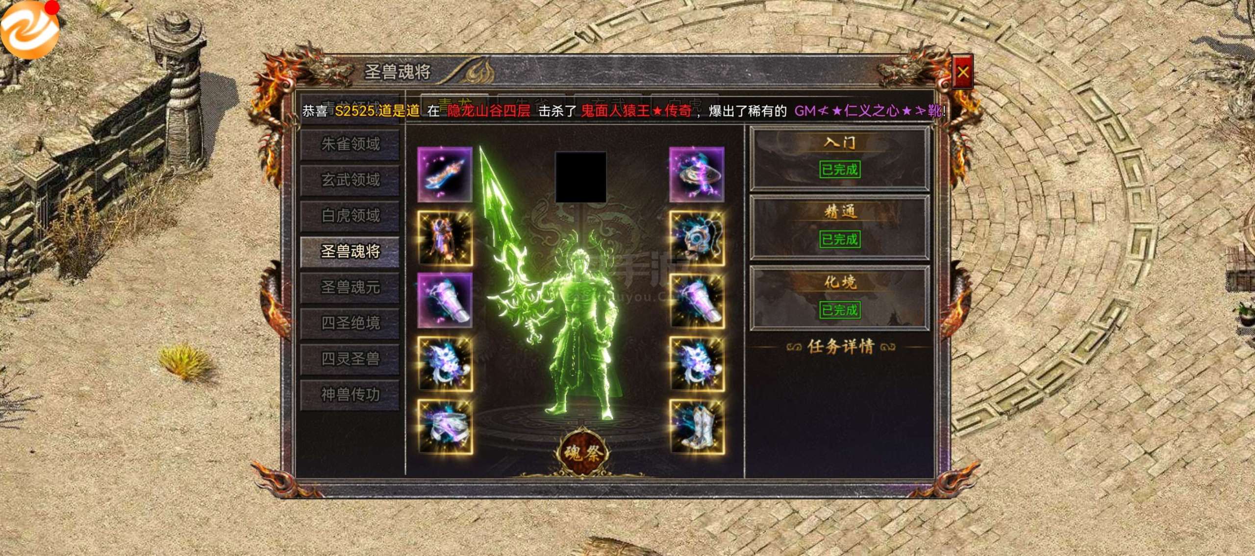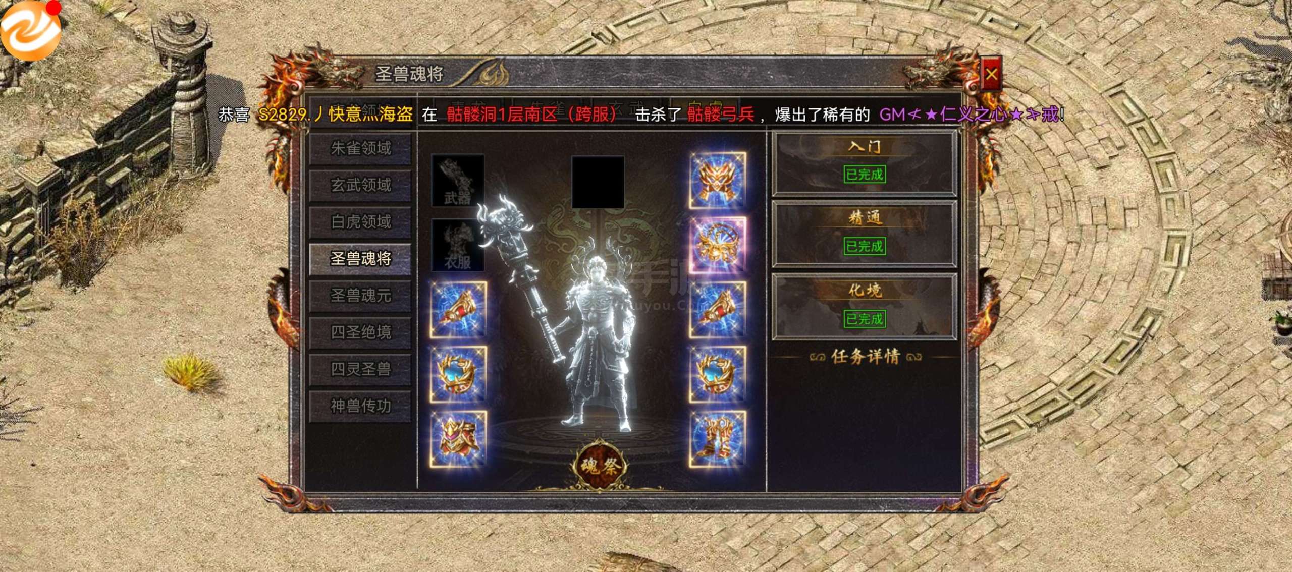 传奇霸主【端游】200万小号,有3.6万灵符,五星圣兽只缺剑甲