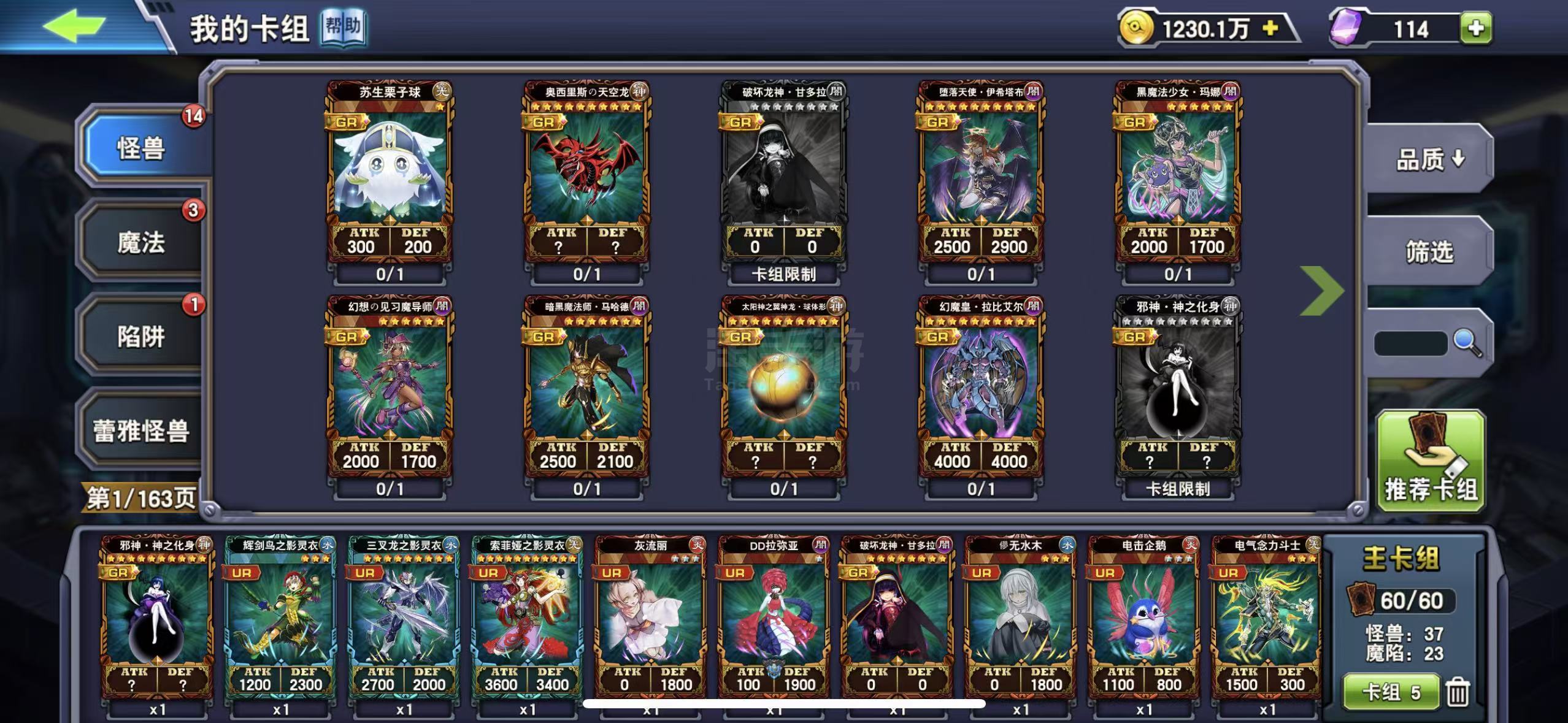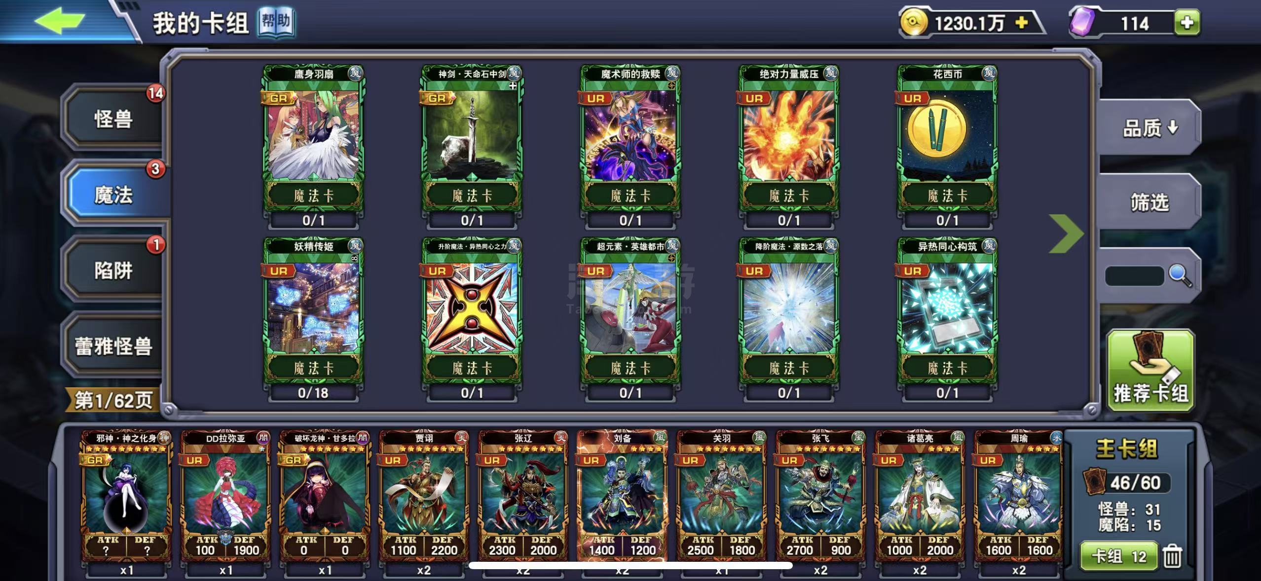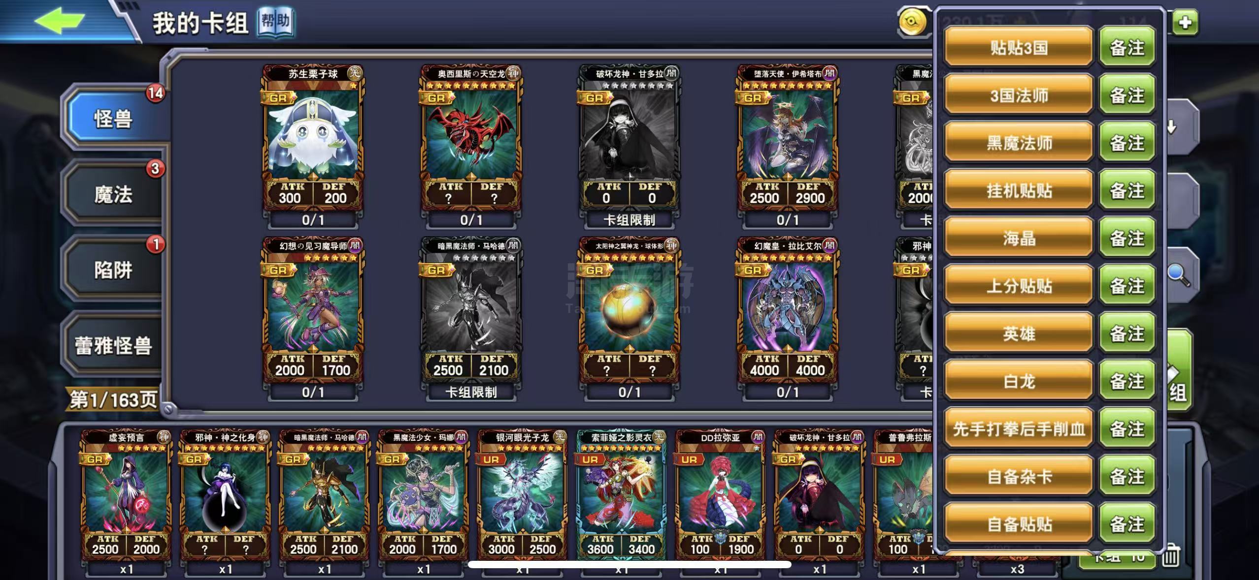 V12邪神 高配顶配贴贴三国卡组海晶黑魔法师银河多GR大法师卡组两套千万血卡组一套