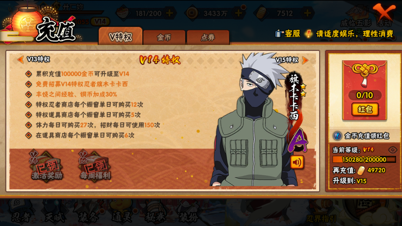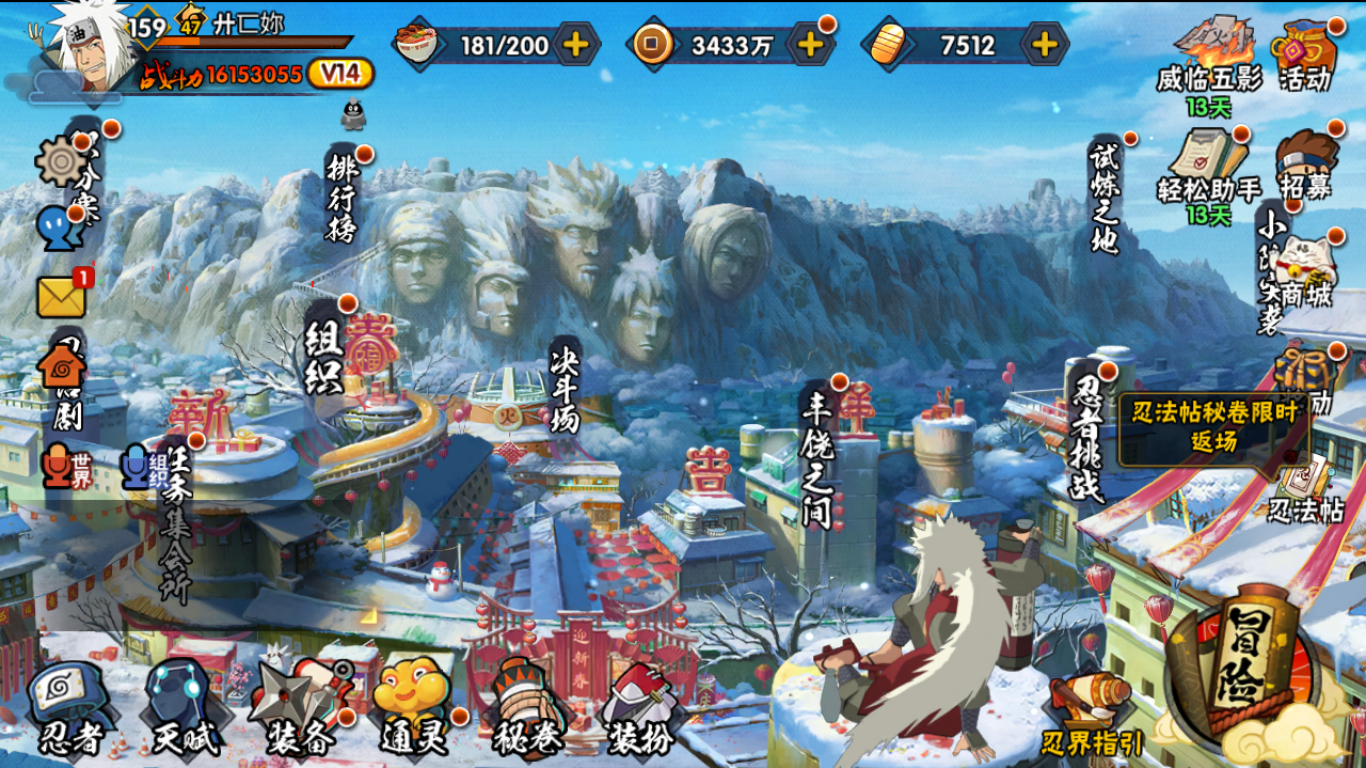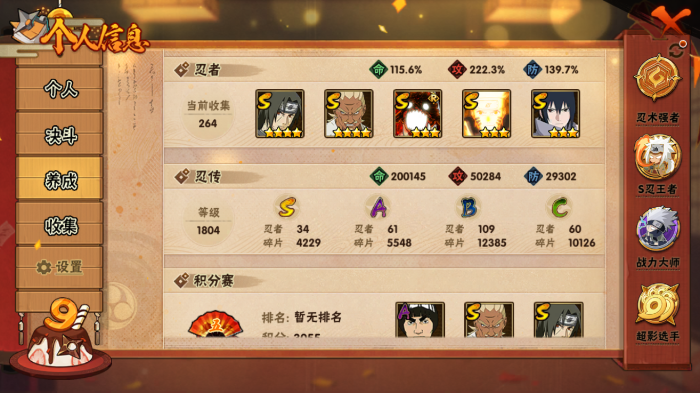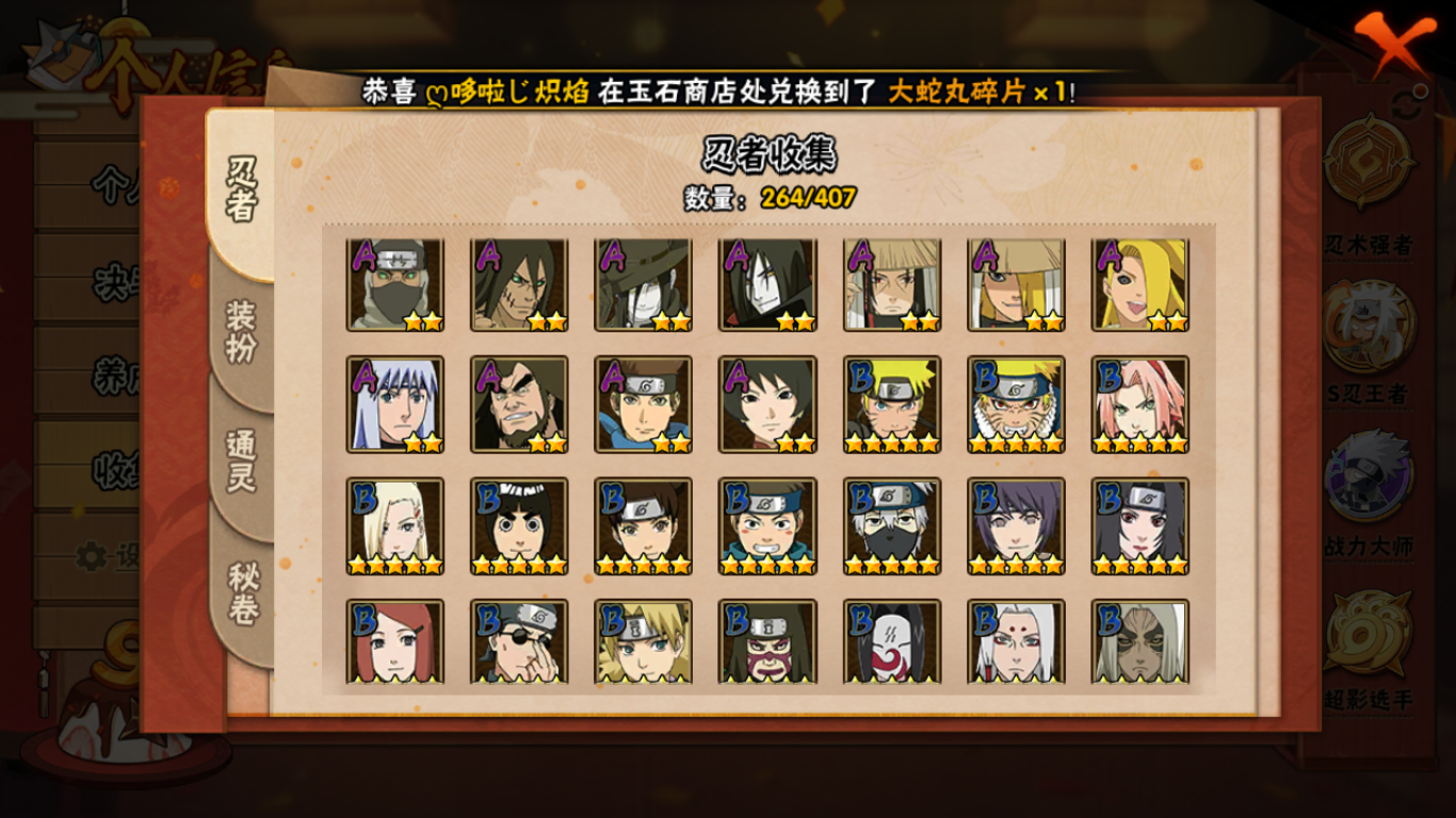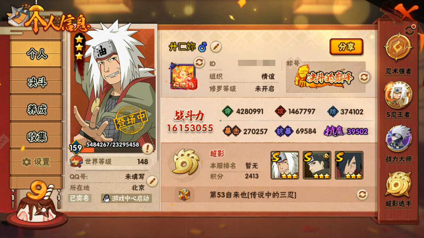 氪1.5W!1615W战力 白破 死水 创斑34S+328祈愿 青春哥 惊门凯+6个198直购61A+4直购通灵+90片红叶带土 80片金身水门+4紫皮+忍战李168传承奥义景门开!+9幕布+1名片