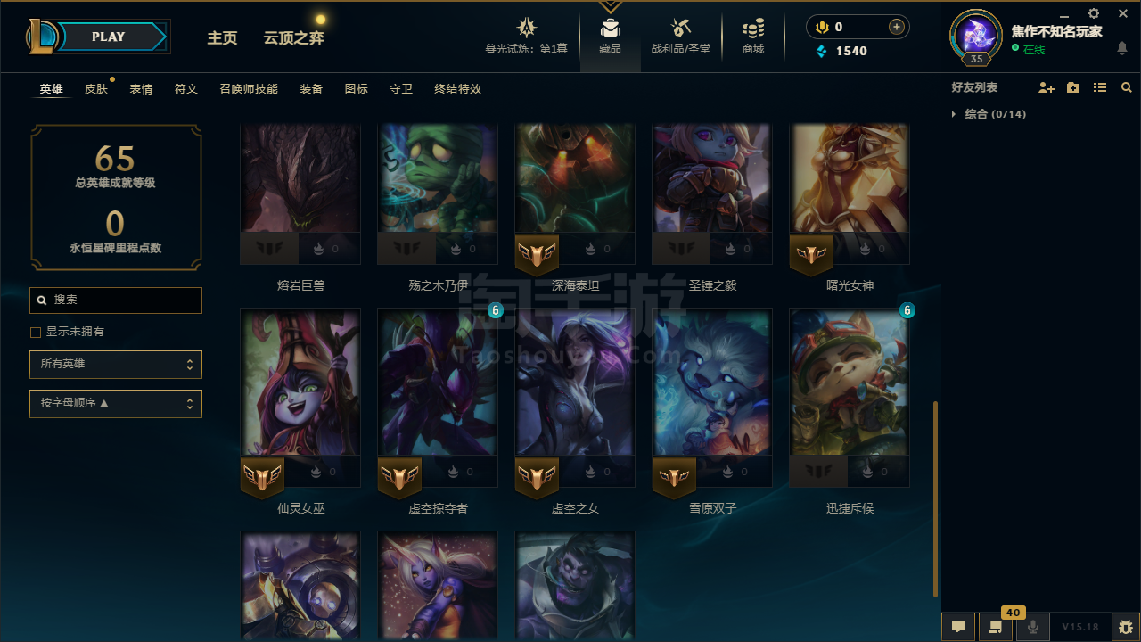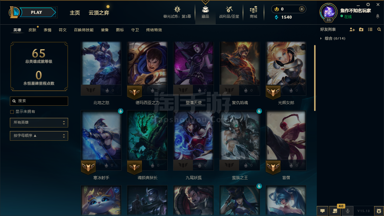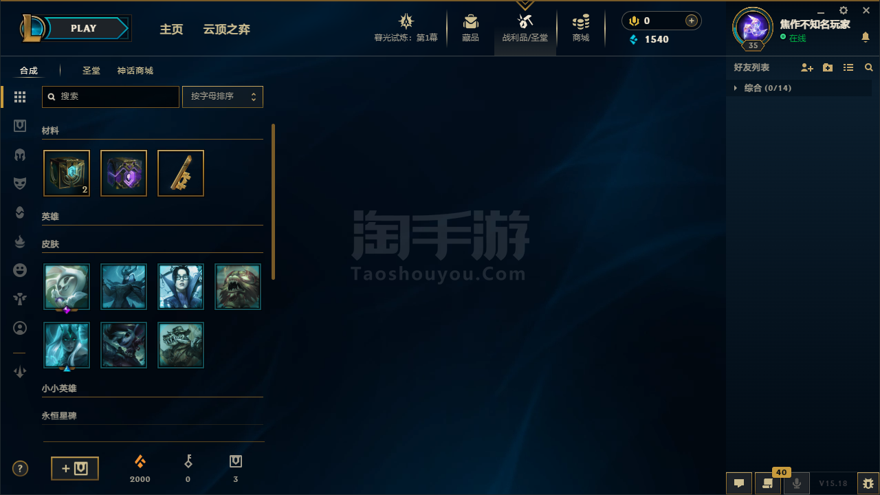 35级 18个英雄2个皮肤 藏品7个皮肤