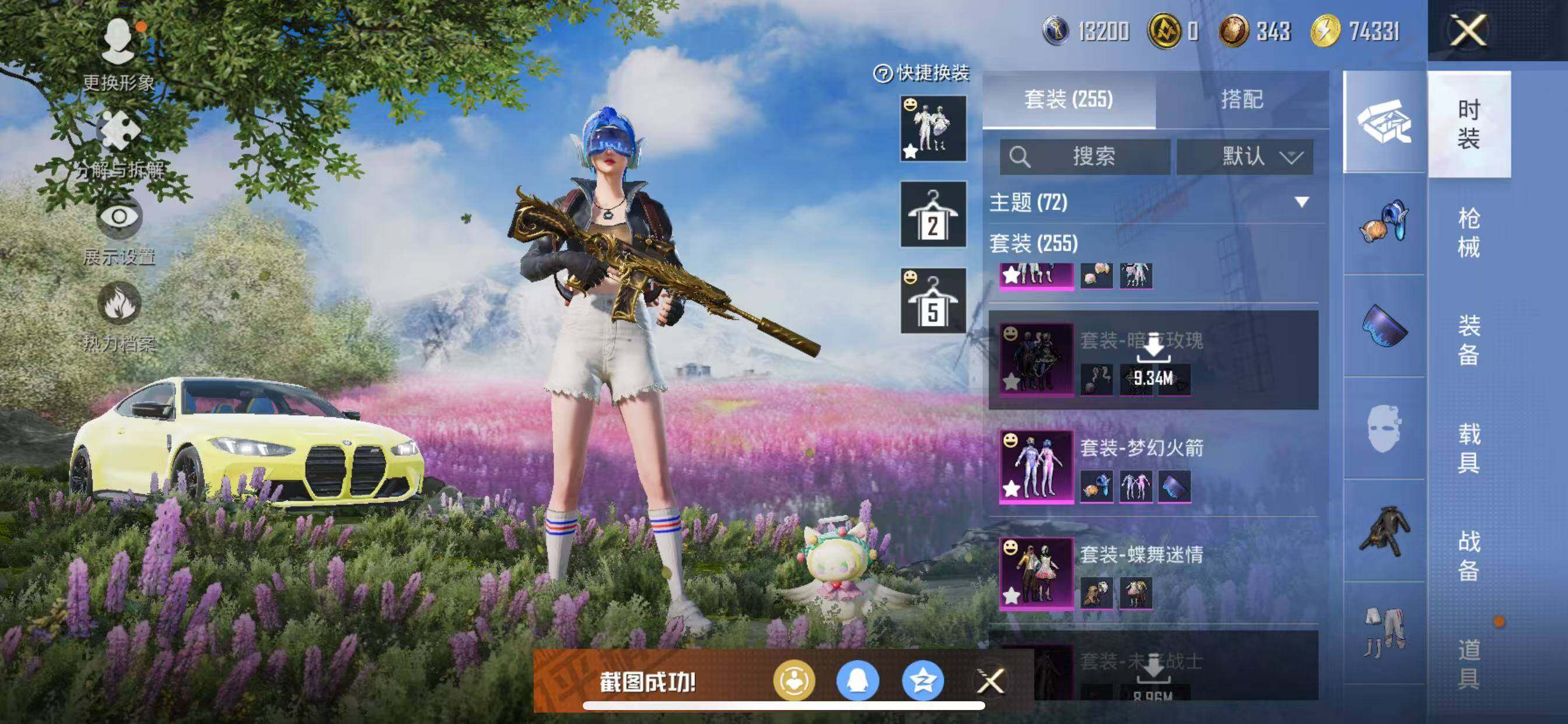 苹果 手Q-11粉装-6特效枪-1载具-4粉色飞行器-107837热力值-15王牌印记-255套装-334枪皮