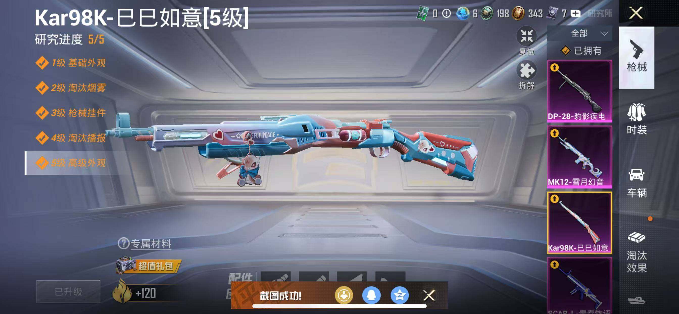 苹果 手Q-11粉装-6特效枪-1载具-4粉色飞行器-107837热力值-15