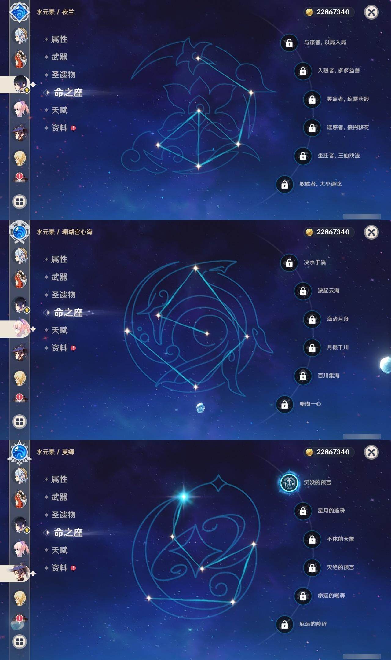 0命千织,0命闲云,0命林尼,1命迪希雅,0命流浪者,1命纳西妲,0命妮露,0命赛诺,1命提纳里,0命夜兰,0命申鹤,0命优菈,0命雷电将军,1命枫原万叶,1命神里绫华,2命钟离,0命胡桃,1命甘雨,0命魈,0命宵宫,0命温迪,0命可莉,0命珊瑚宫心海,3命刻晴,4命七七,1命琴,1命莫娜,4命迪卢克,0命梦见月瑞希,精1万世流涌大典,精1最