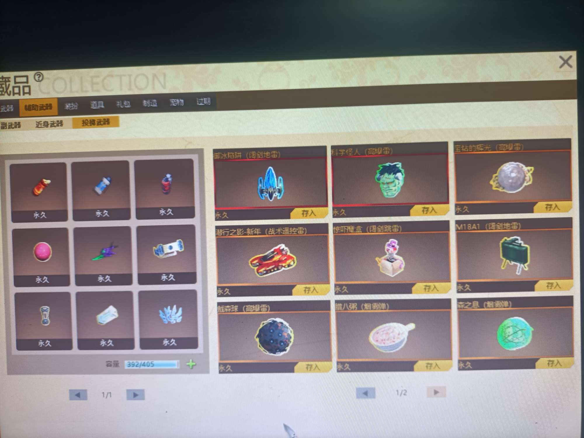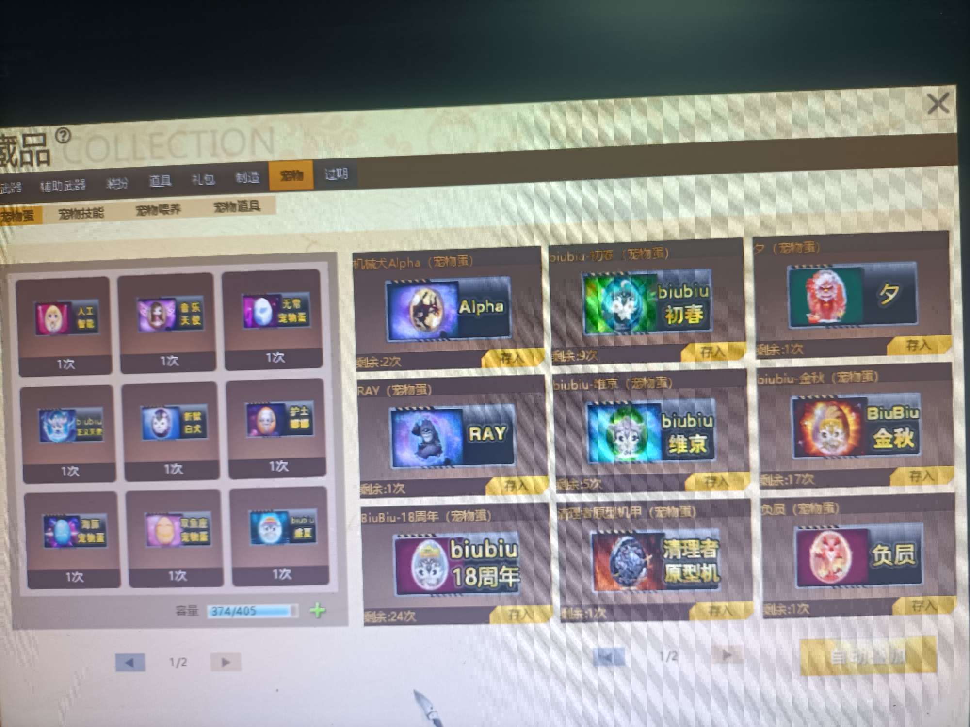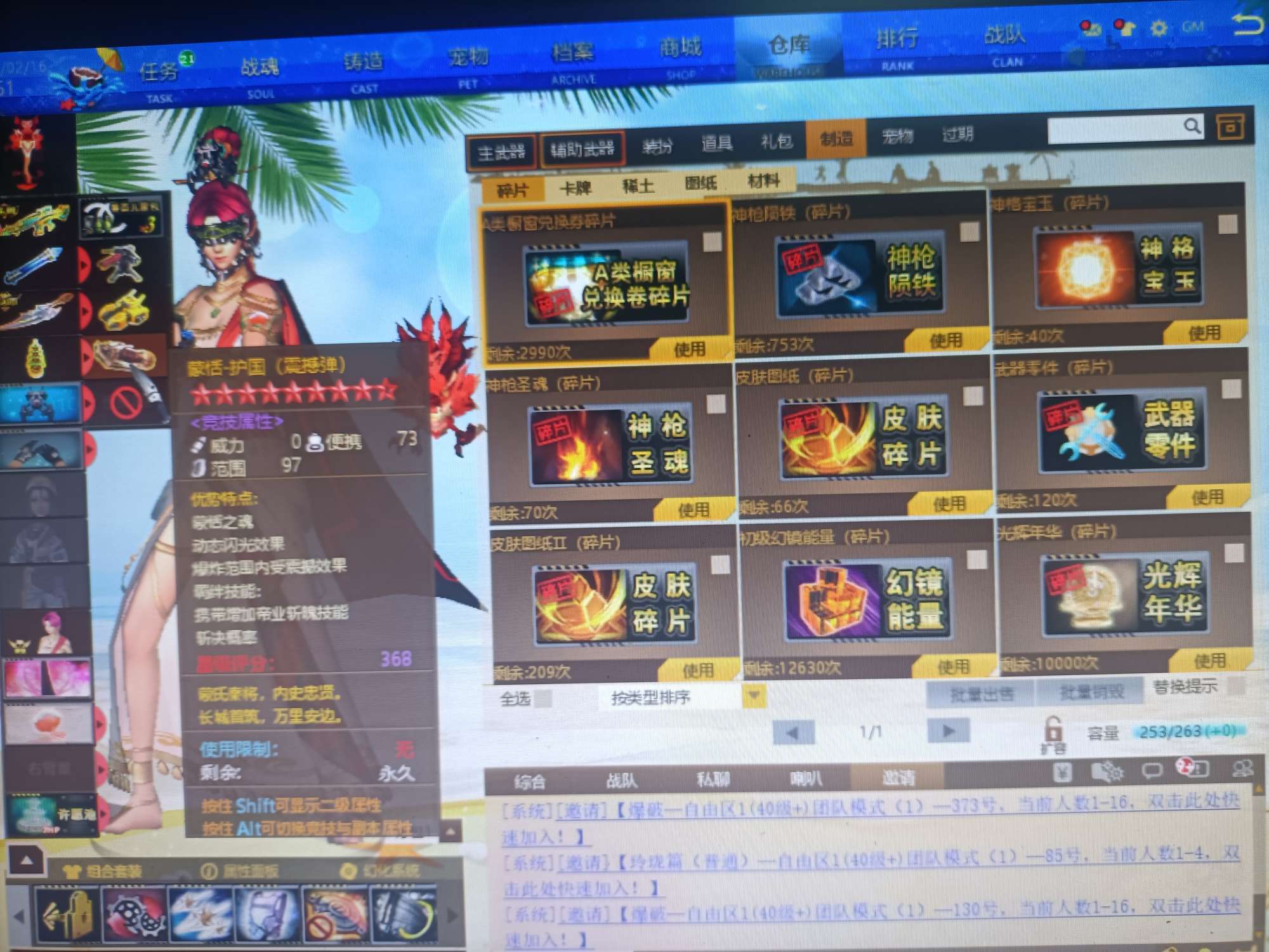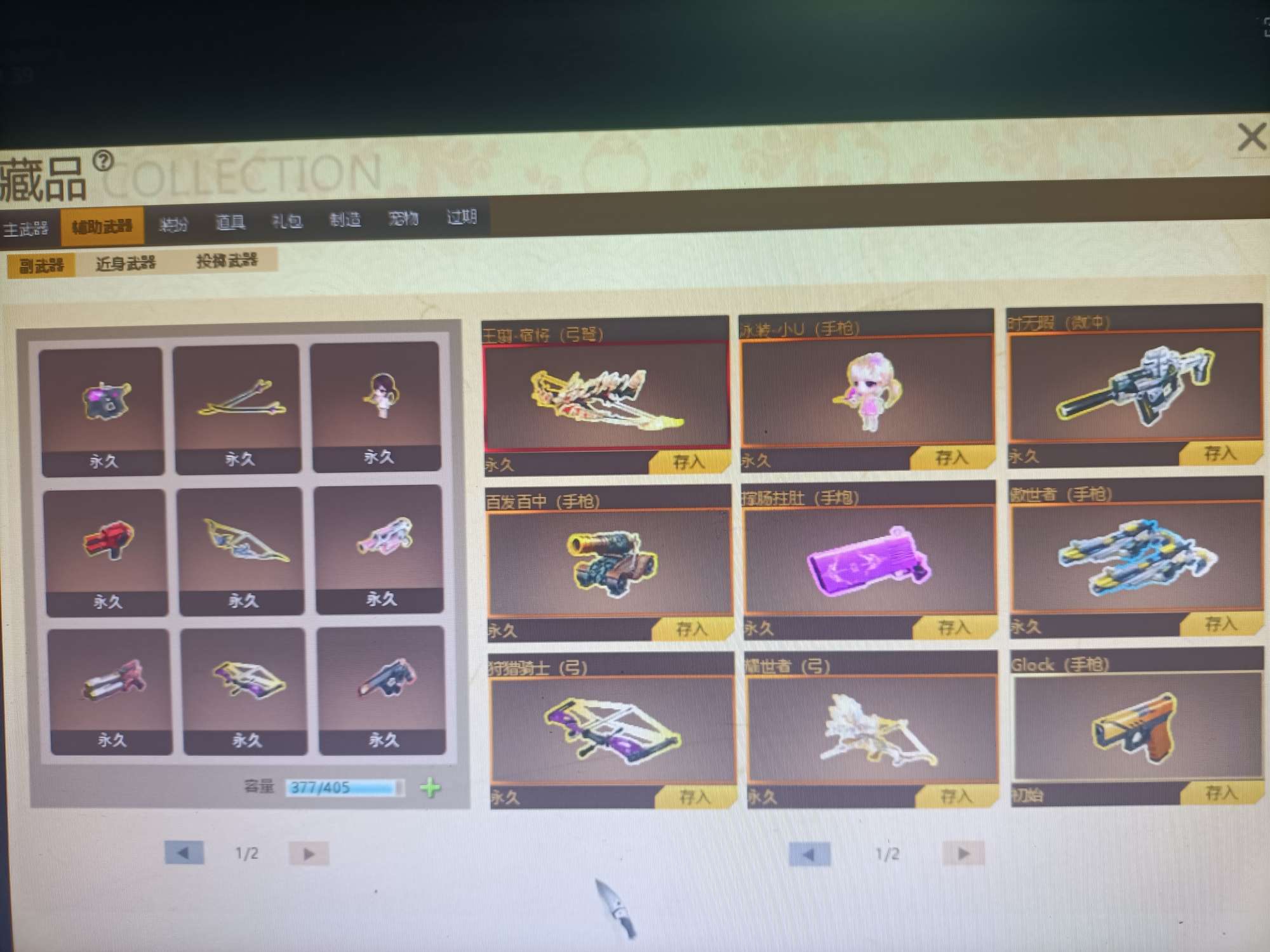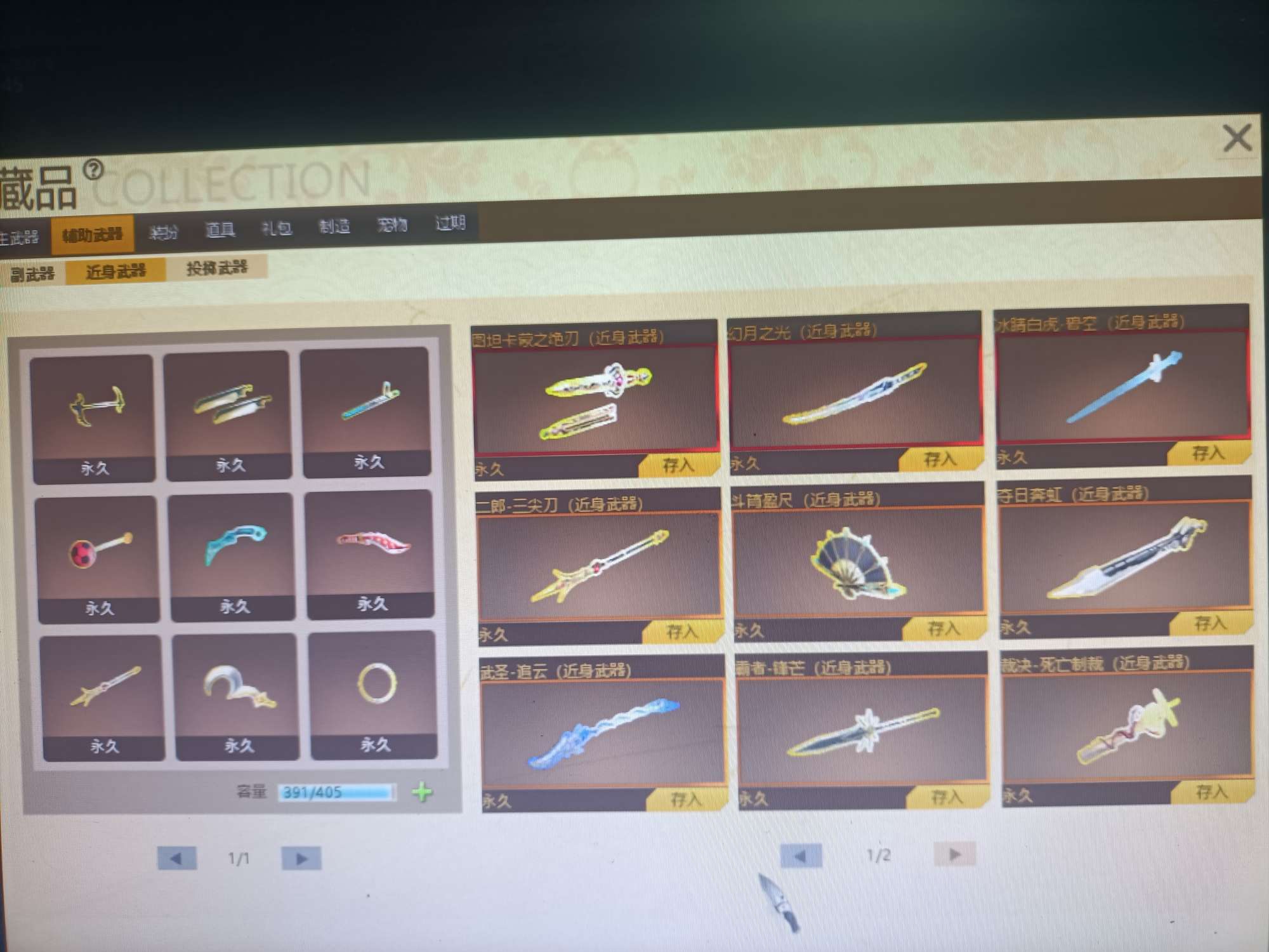 09有角色分离卡1805个卷轴3万多金币卡31把8.5主副武器刀雷哨塔2套二郎神套装各种套皮肤看图。