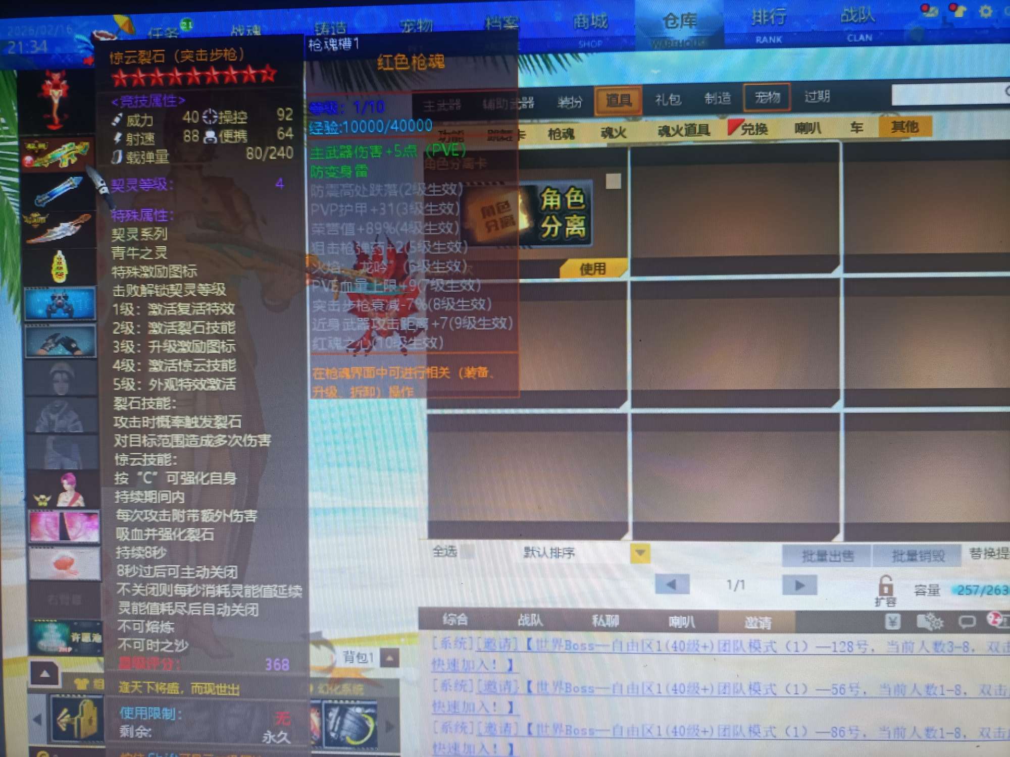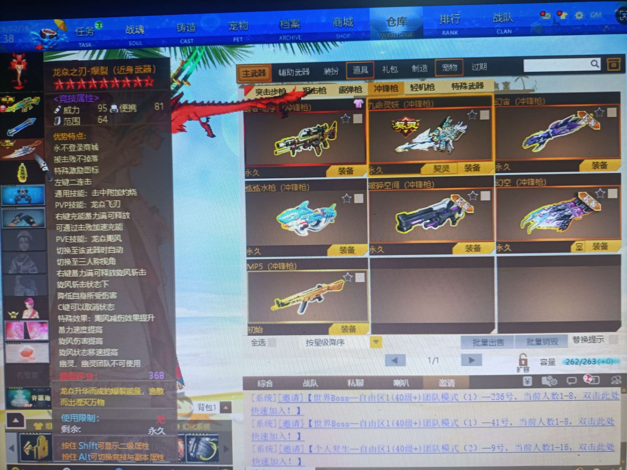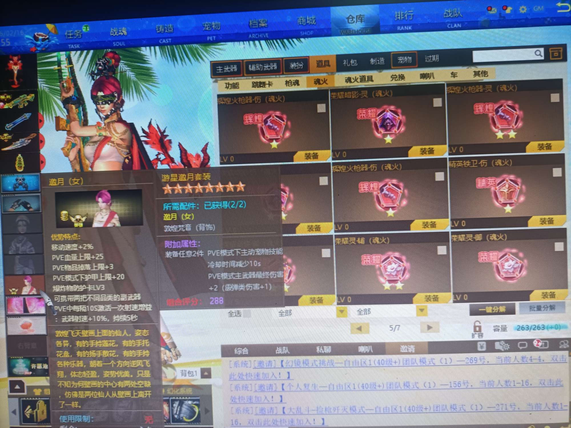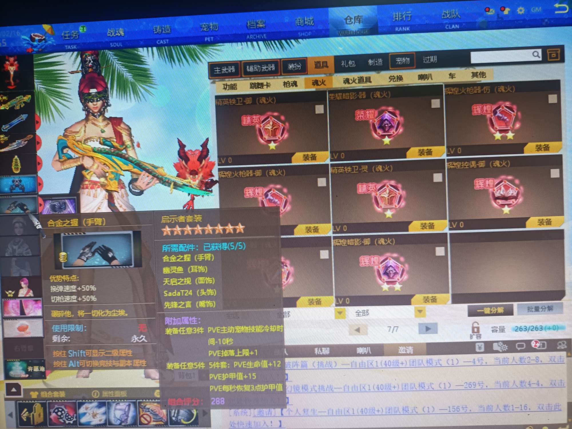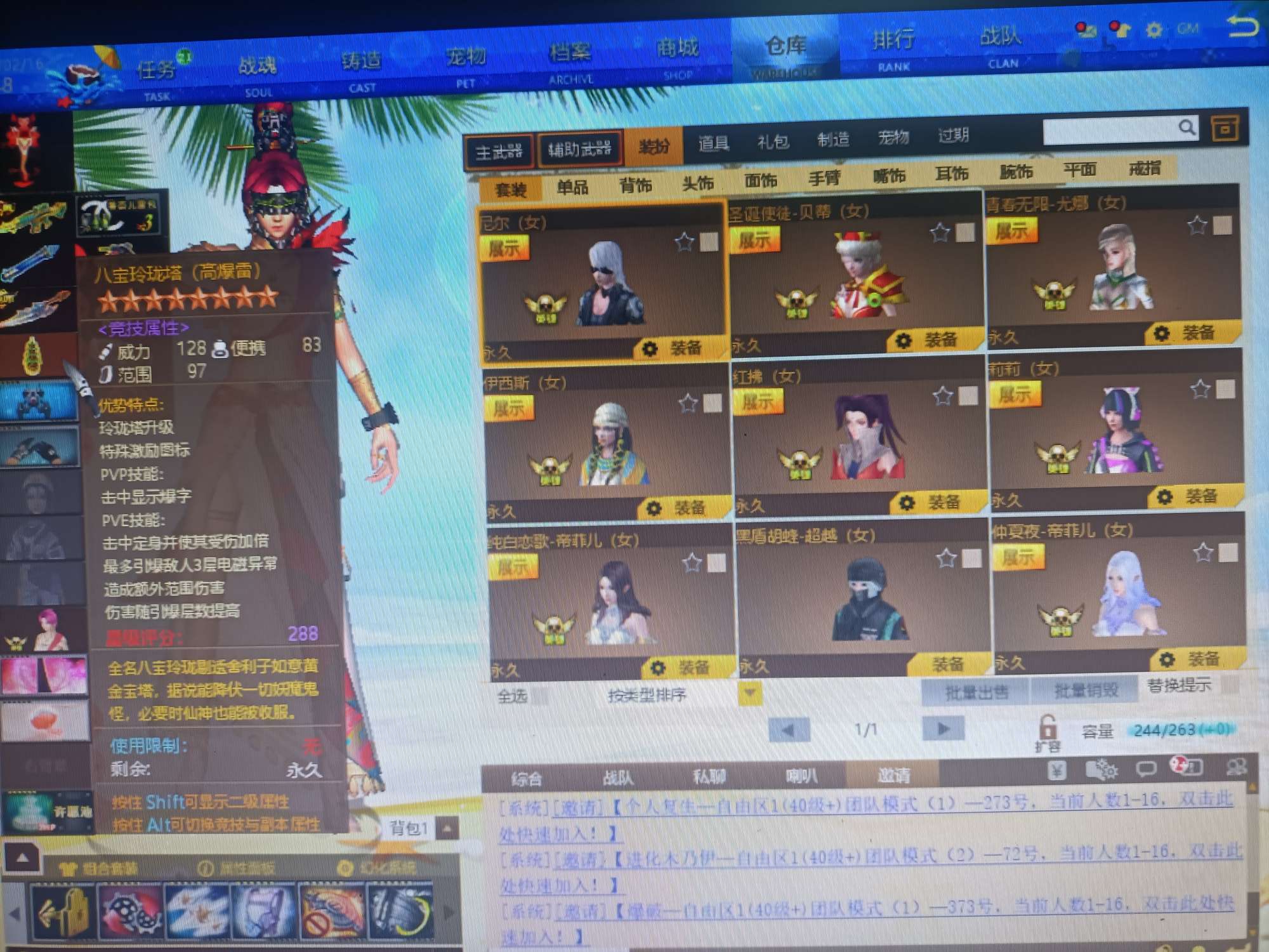 09有角色分离卡1805个卷轴3万多金币卡31把8.5主副武器刀雷哨塔2套二郎神套装各种套皮肤看图。