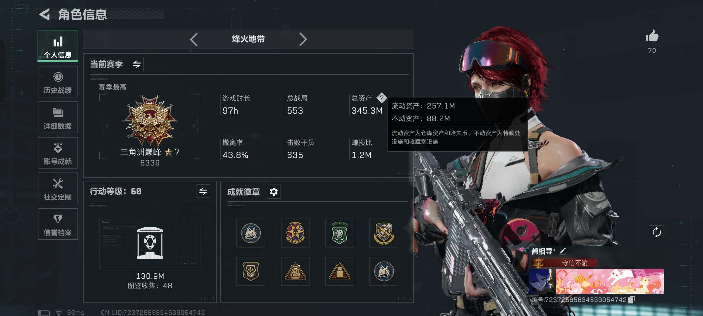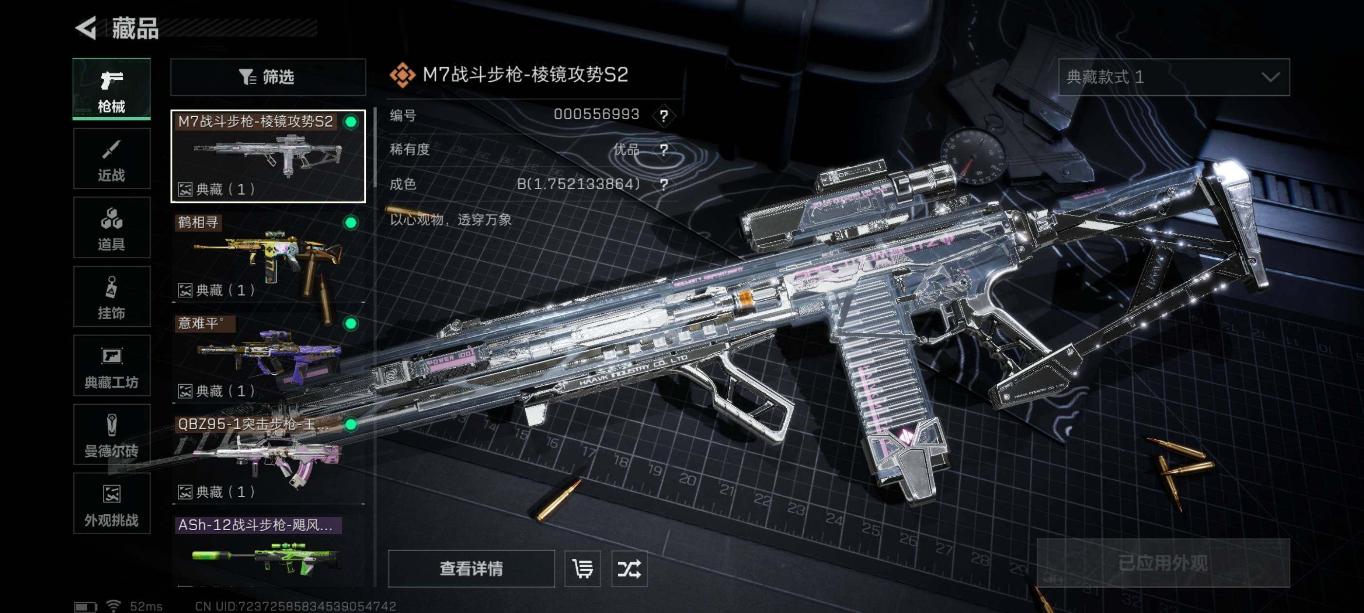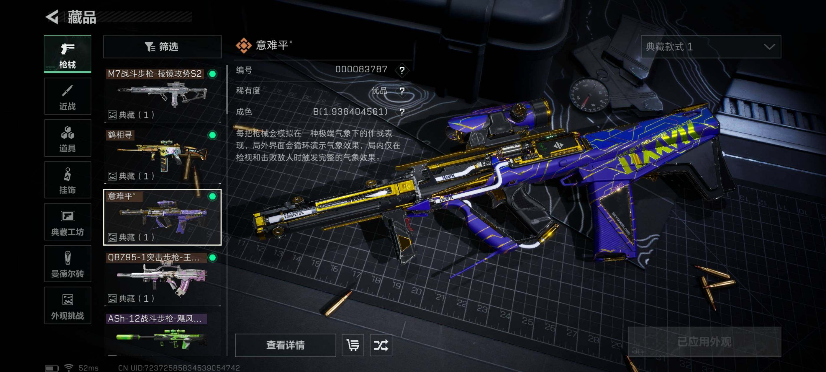 【氪金大佬首选-满红皮+两刀皮+四典藏枪皮-蚀金玫瑰+水墨云图+黑·天际线+午夜邮差+维什戴尔+北极星+电锯惊魂;SCAR-H战斗步枪-电玩高手优品S,QBZ95-1突击步枪-王牌之剑优品B,AUG突击步枪-气象感应优品B,M7战斗步枪-棱镜攻势S2优品B】【Q区三端互通】【无二次】YXz2218-特勤处:仓库9级/靶场7级/训练中心7级-总资产345.3m-哈夫币7143K-烽火等级:60级【