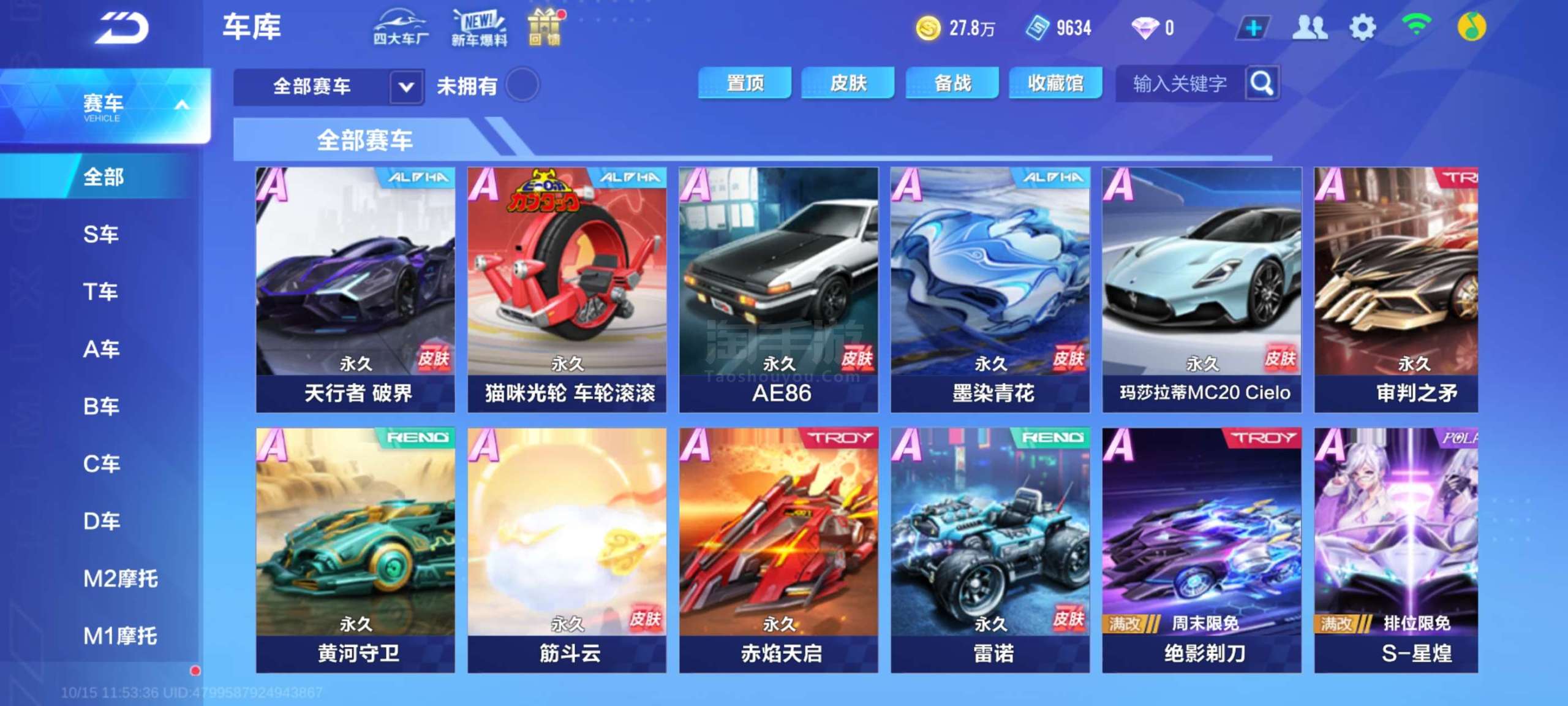 QQ飞车手游【安卓QQ】【不议价】永久16A,27万金币