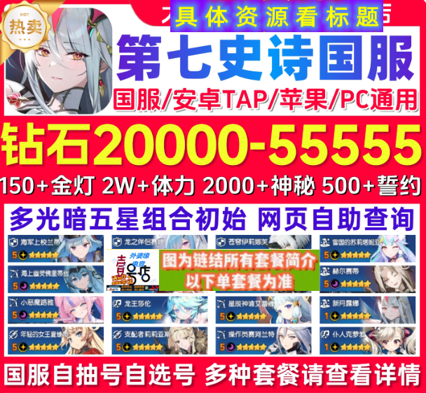 第七史诗【安卓官方】7个光暗五星+350抽(14000钻+1700奖牌+550誓约+125金色石+70银河)五星15+个