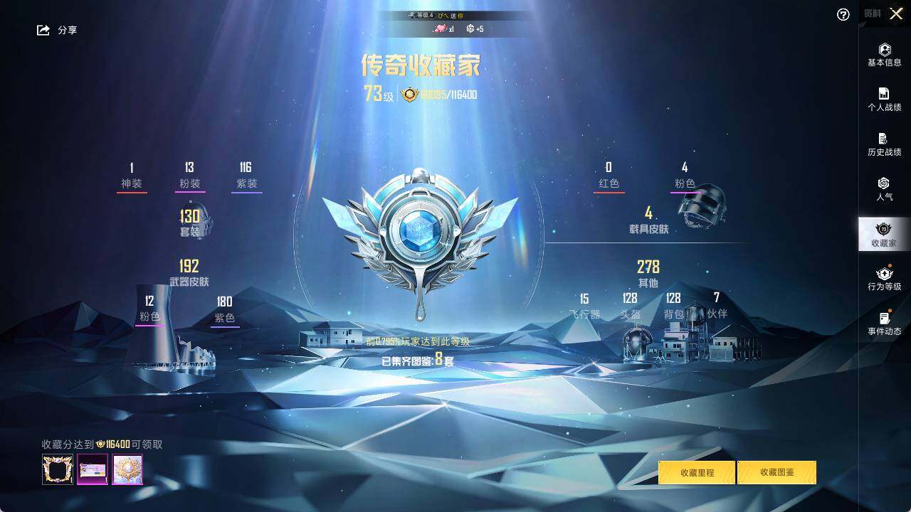 素材身法号 苹果 手Q-1神装-13粉装-12特效枪-4载具-9粉色飞行器-7.6w热力值-3王牌印记-130套装-206枪皮【红色神装等级】:圣域龙灵-瑞拉(二级)【热门品类】:粉装-梦幻火箭,角色-军刀雅典娜【粉色载具】:宝马M4(圣保罗黄),迈凯伦塞纳(冷萃蓝),最终圣卫者摩托车【粉色套装】:粉装-梦幻火箭,粉装-蜜桃特工,粉装-冰川红玫,粉装-仲夏莫吉托,角色-美雪,角色-引力星,粉装-