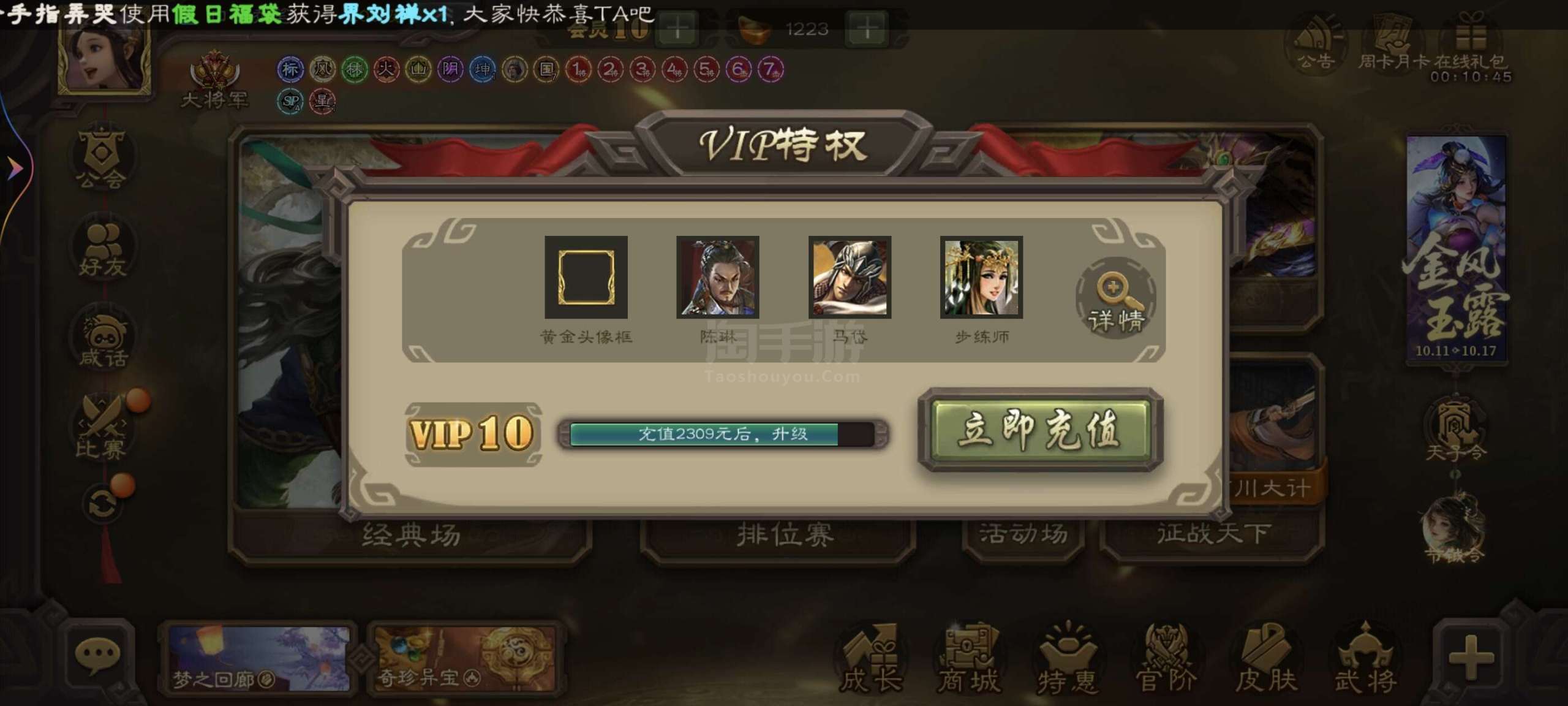 三国杀【安卓vivo】V10,二等大将军,一万心愿积分