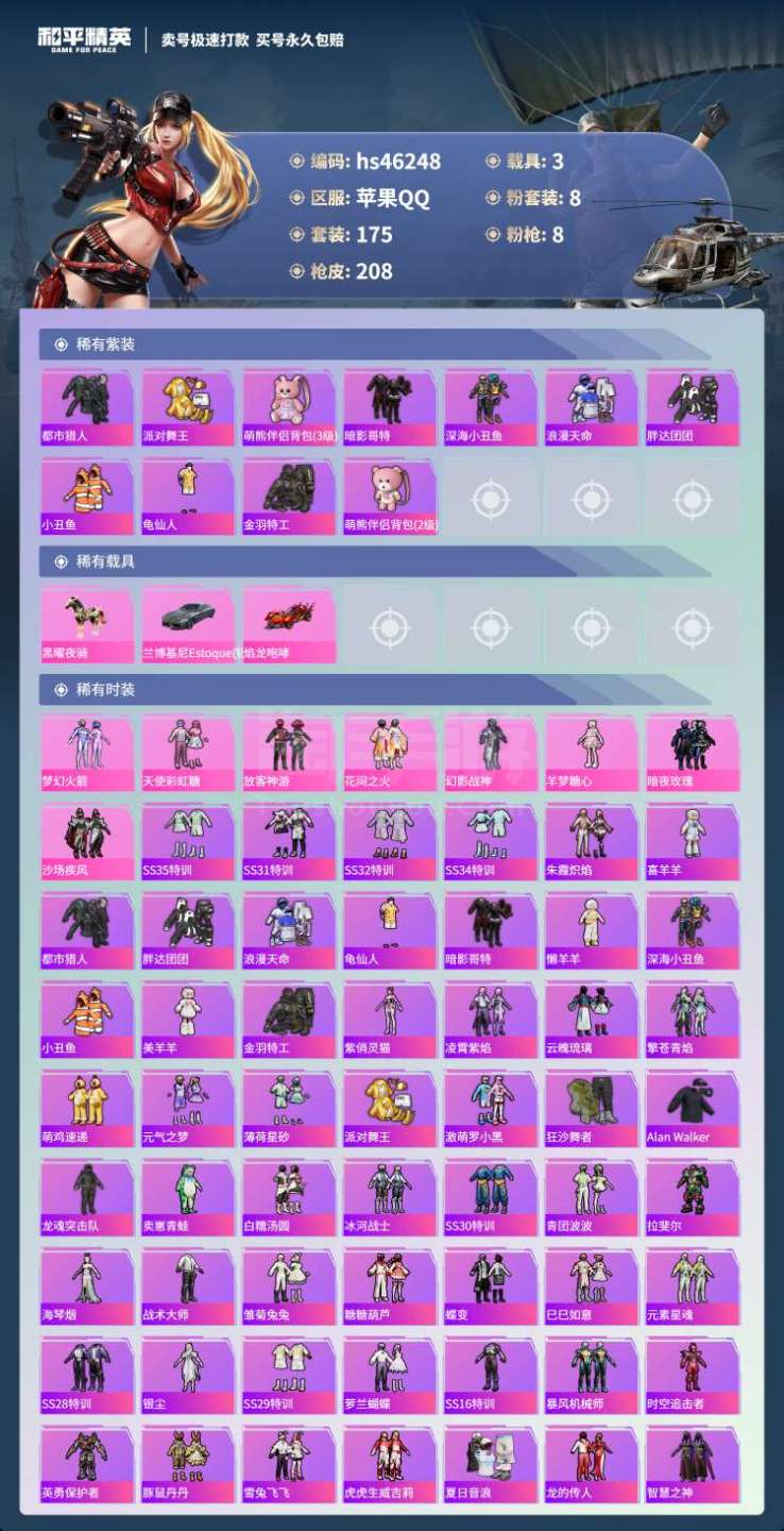 hs46248 苹果手Q-18王牌印记-有战神框-8粉装-8特效枪-3载具-75190热力值-175