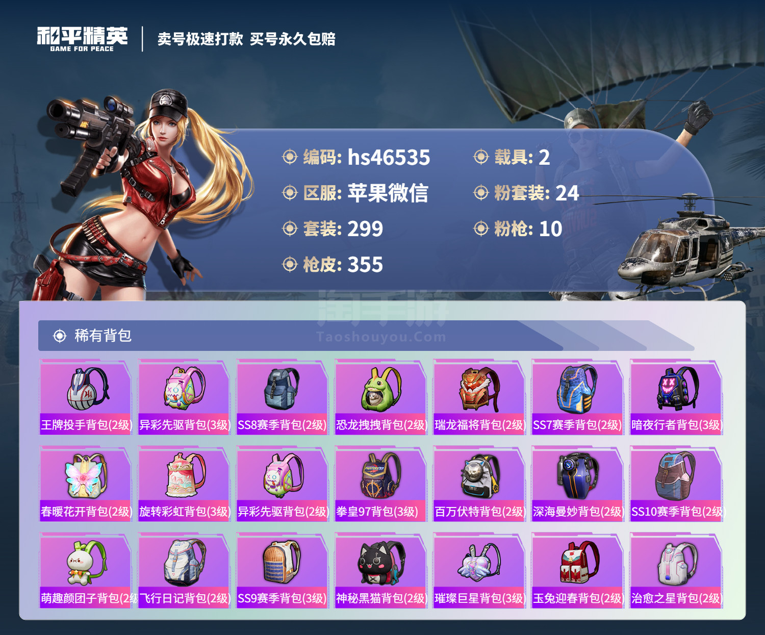 hs46535 苹果v-23王牌印记-24粉装-10特效枪-2载具-134886热力值-299套装