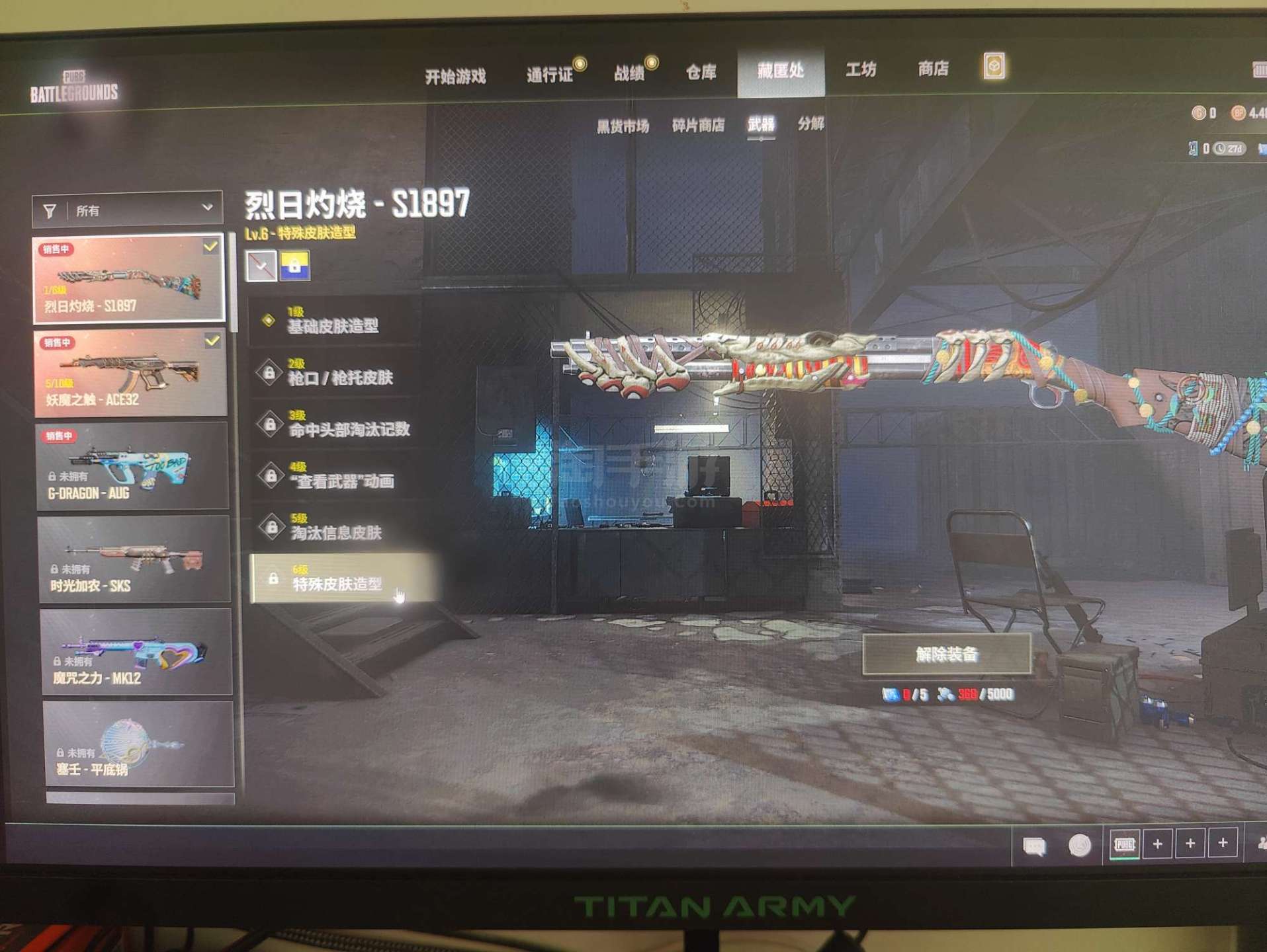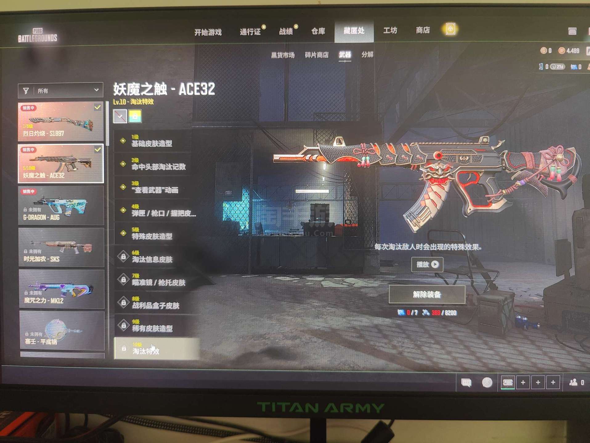 绝地求生(PUBG)【端游】5级妖魔之触ACE,成长型喷子,黄金面具,多套装多衣服,看图