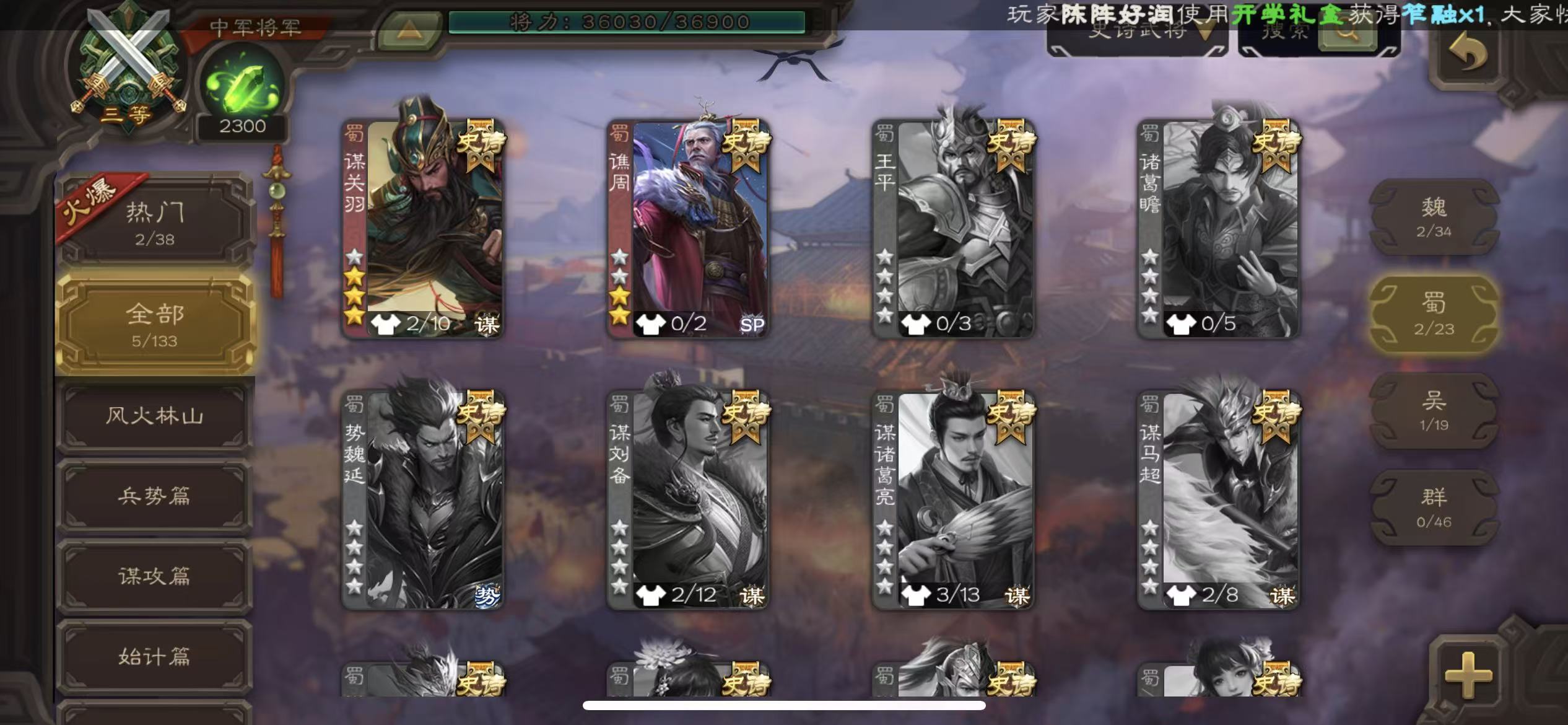 中军动态大宝谋关羽谋黄月英谯周三卡