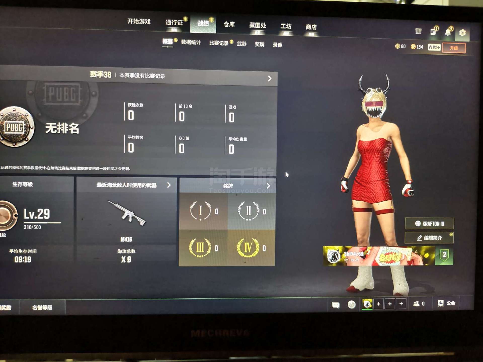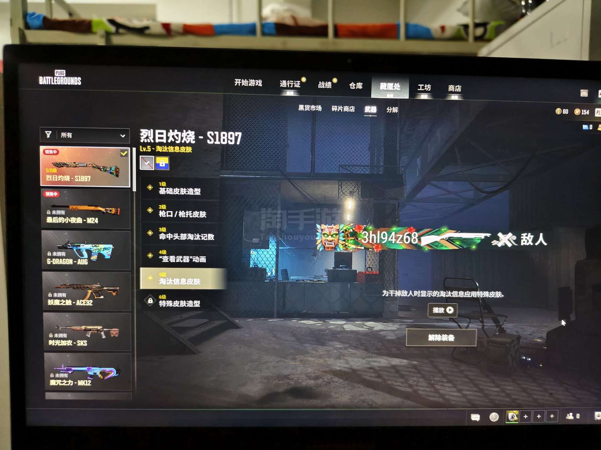 绝地求生(PUBG)【端游】5级s1897发光手臂,牛角头,可议价
