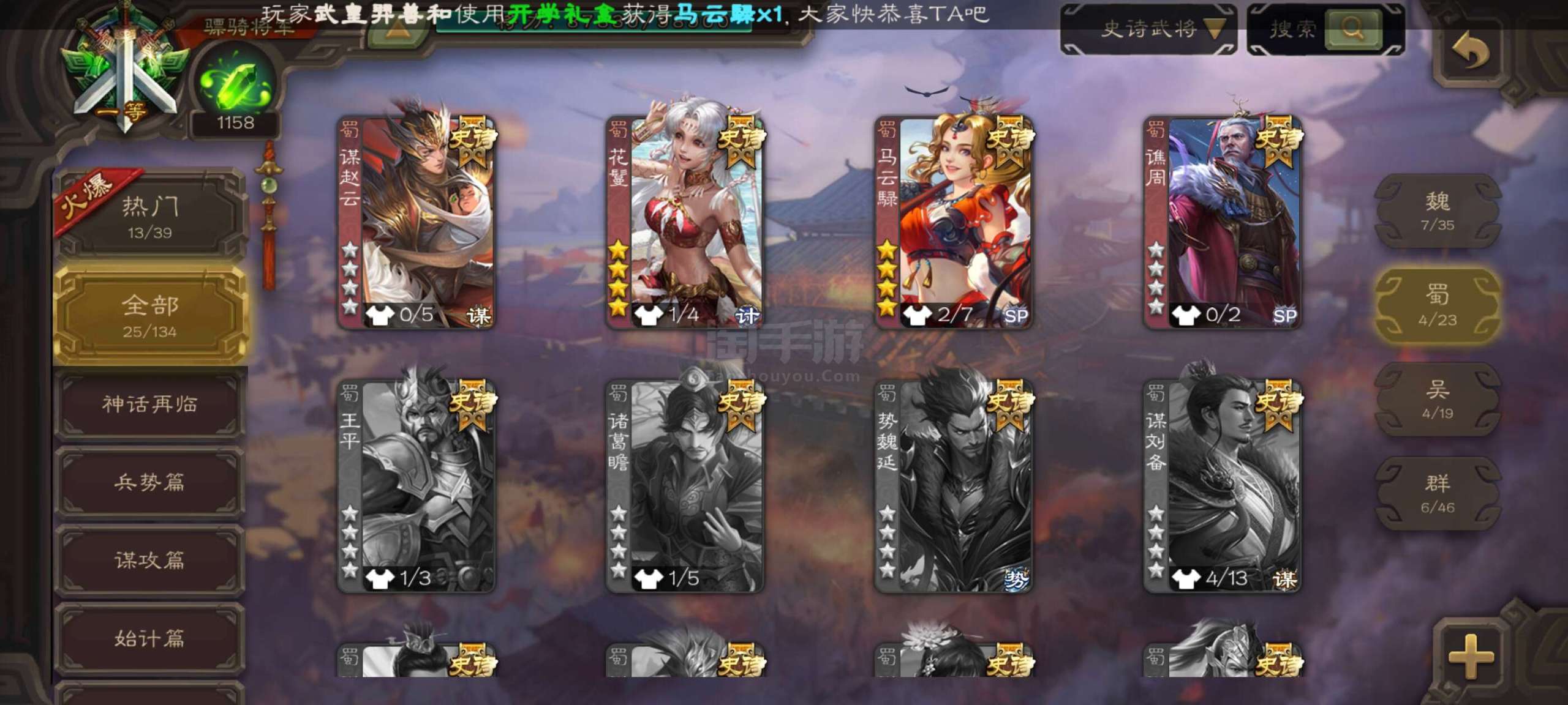 史诗武将数量: