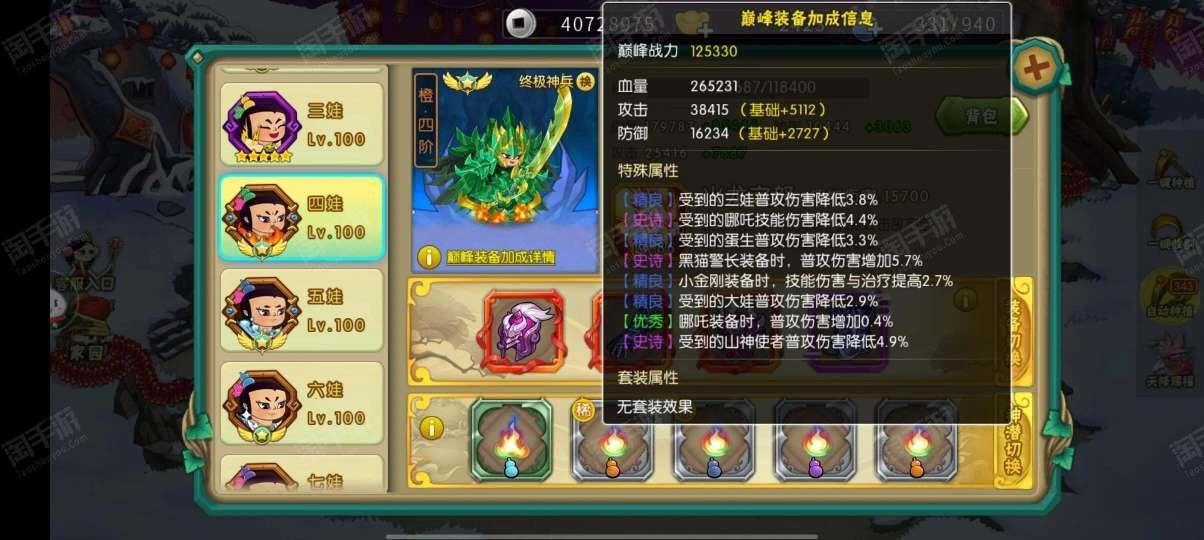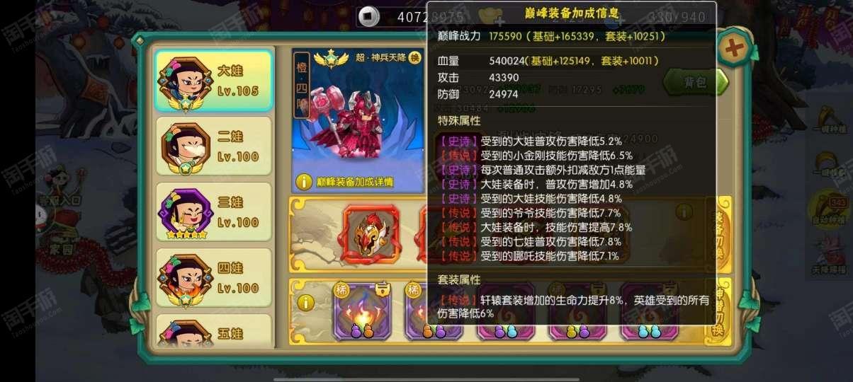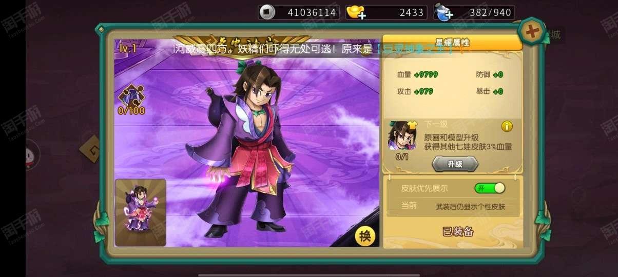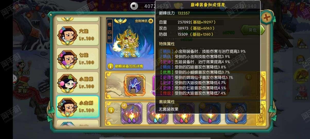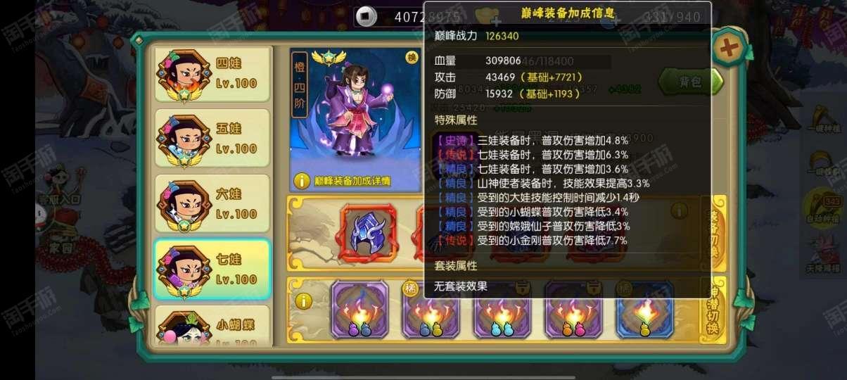 葫芦娃【安卓4399】准V9号,属性高,已经通19章了,账号是死绑