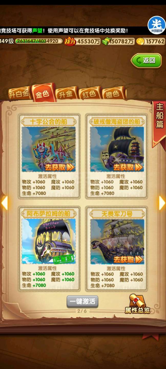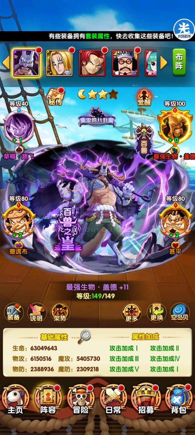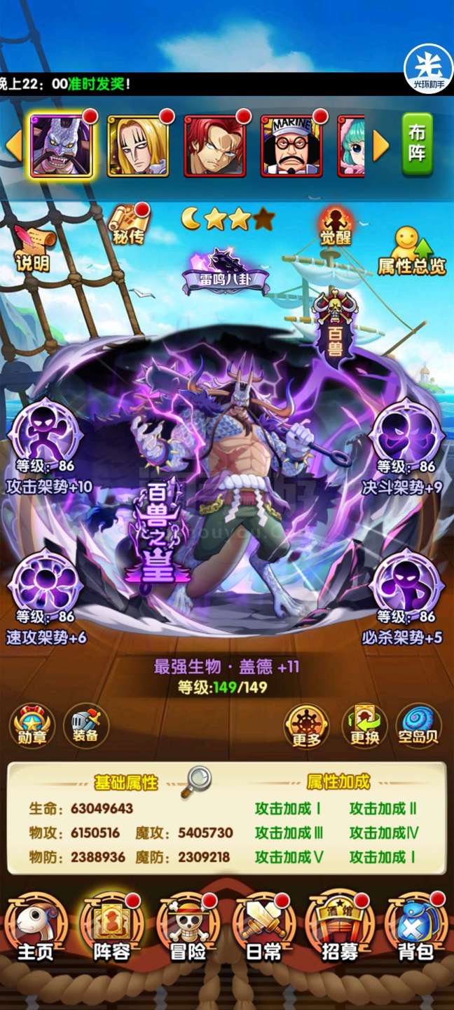 航海王强者之路【安卓91】典藏皮白金船金凯多,1金船1红船,金凯多勋章已破红,红色招式卡,有半年金币袋,走冰便宜可小刀