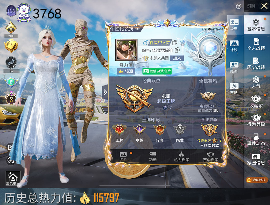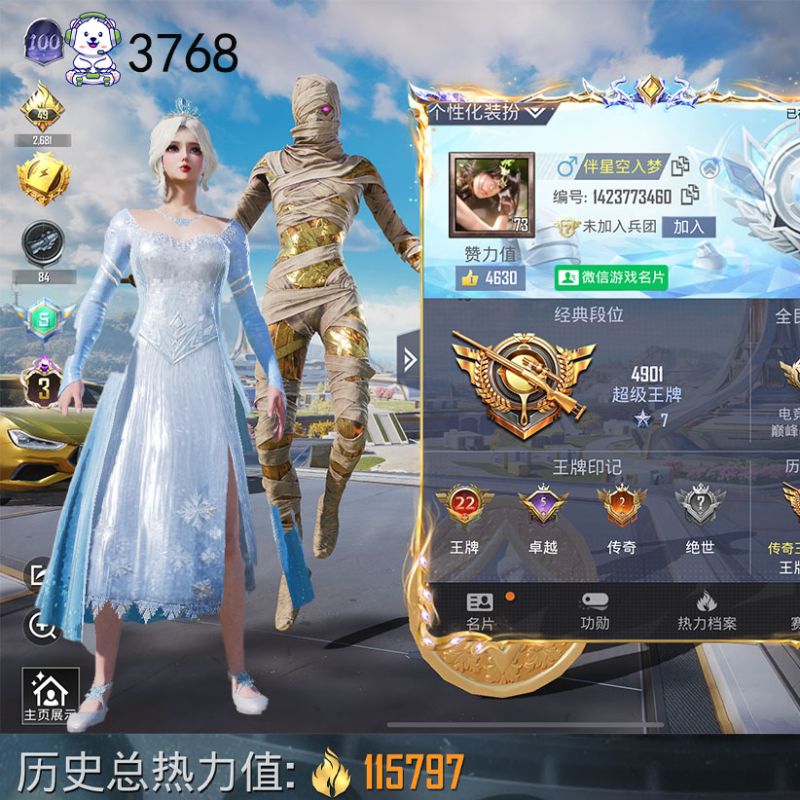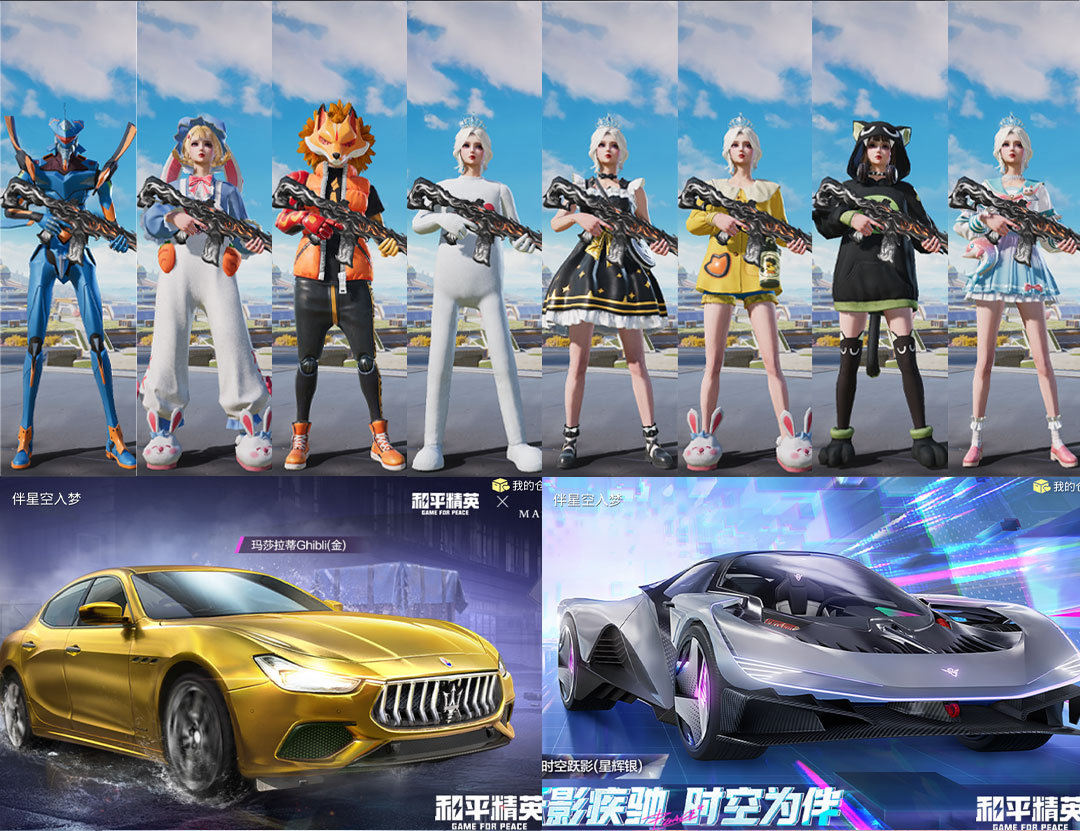 和平精英【苹果微信】6车11枪8粉图卡盟3级金玛莎雪国浪客幽澜尊爵时空跃影兔斯基