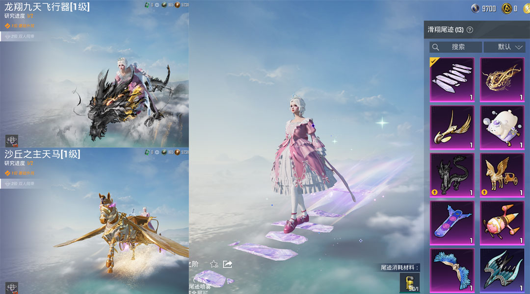 滑翔尾迹:龙翔九天1级,沙丘之马1级,万象金身,华彩金翼,酣梦熊熊 ,灵境之阶,深海曼妙,夏日绵绵冰,繁华小夜曲