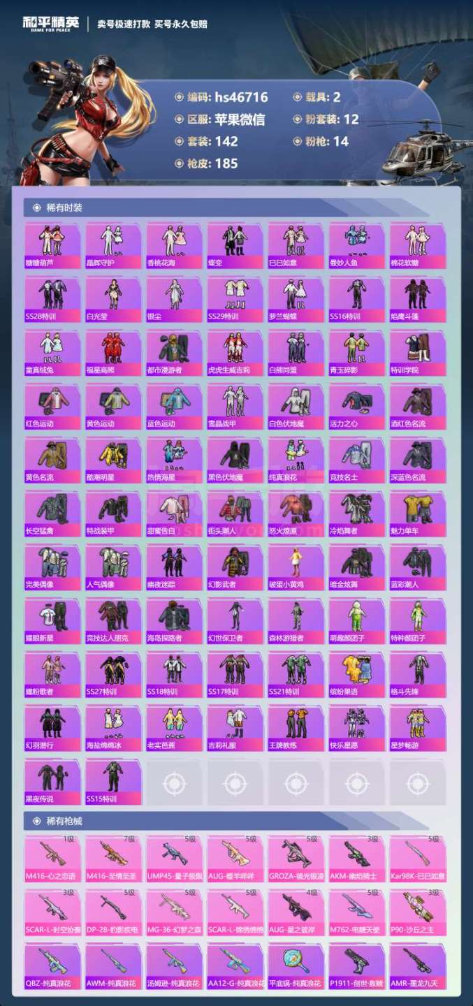 hs46716 苹果微-8王牌印记-12粉装-14特效枪-2载具-69925热力值-142套装-1