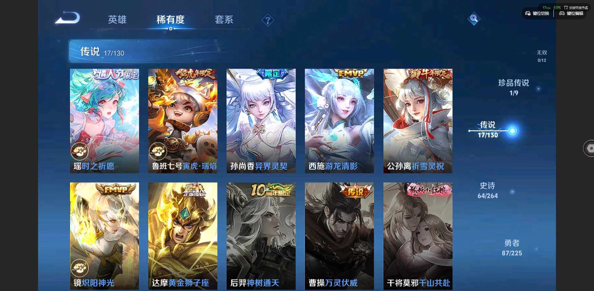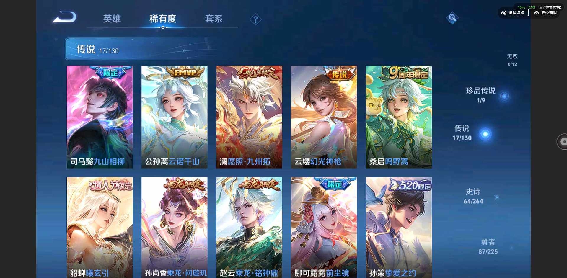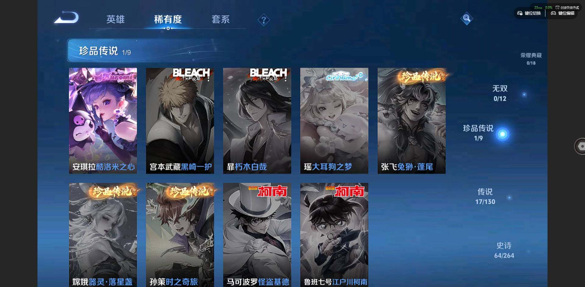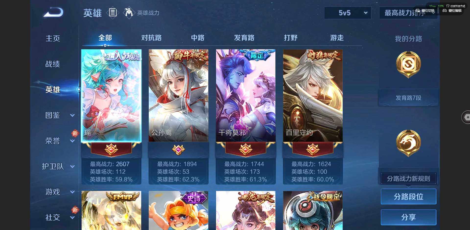 实名: 可修改 贵族等级: V7 英雄数: 125 皮肤数: 202 珍品传说