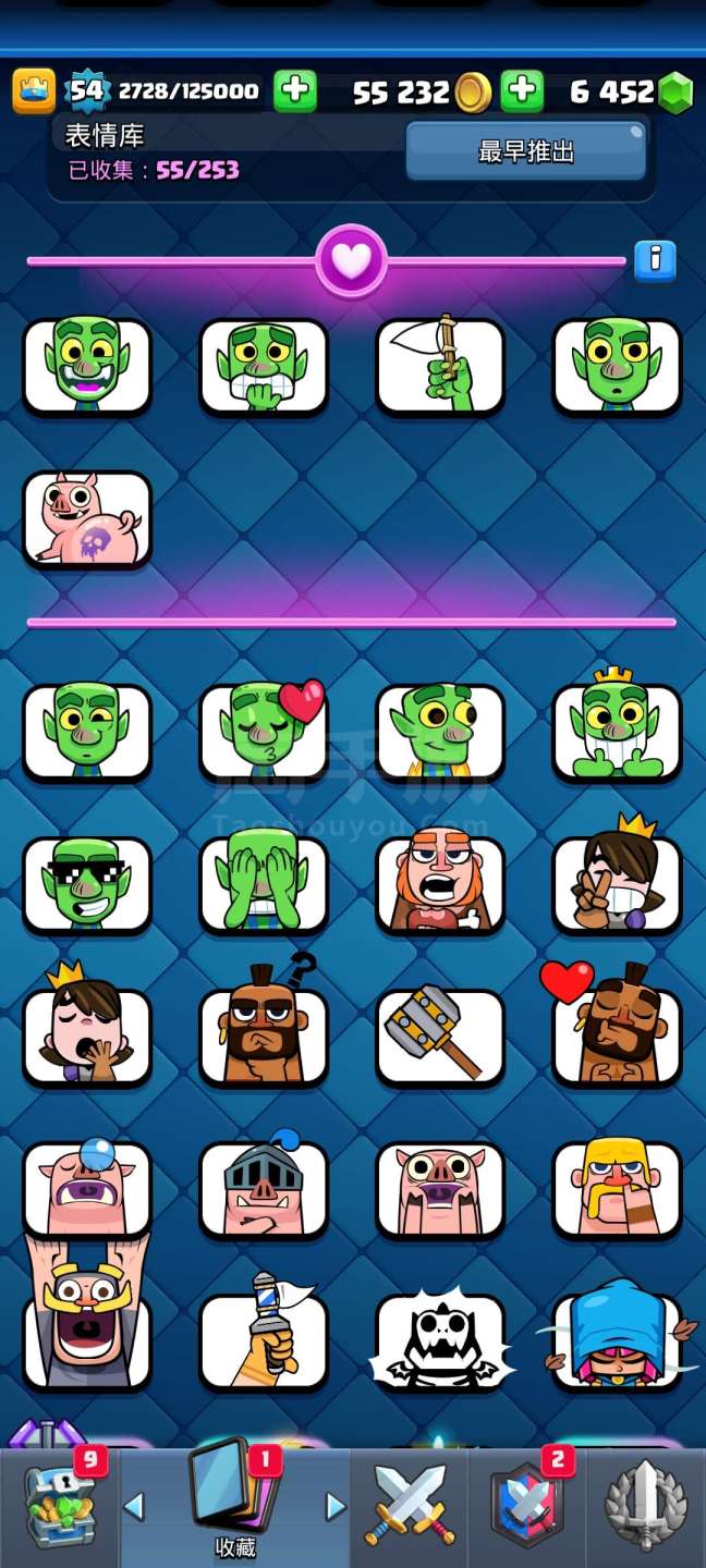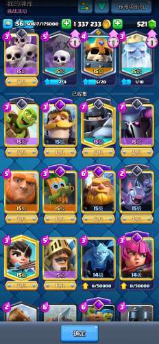 54级,全卡,国王塔15级,8张15级卡,15张觉醒卡,超多表情和装扮