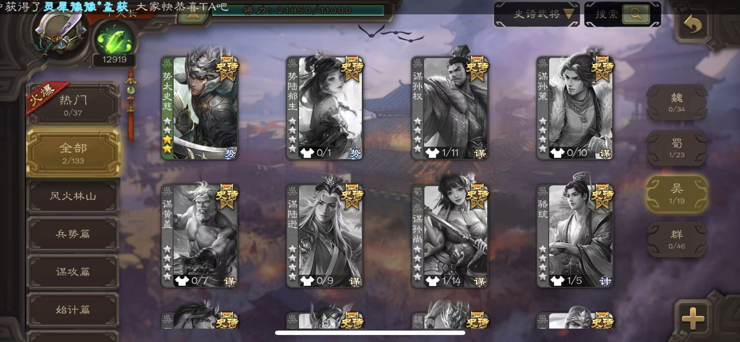 势太史慈14宝珠8万羽毛1.29万将魂三卡126招募令