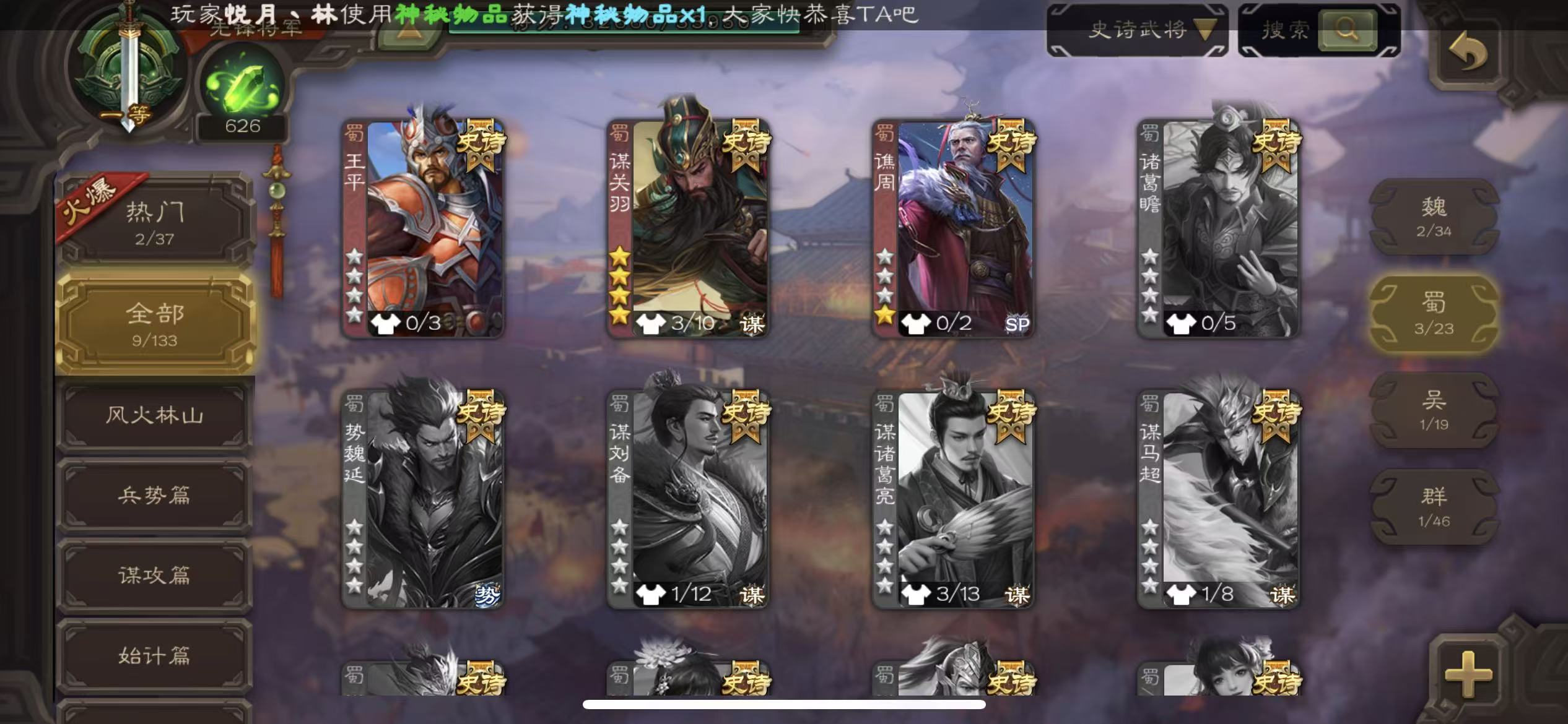 先锋动态谋关羽(以身证道)动态白马动态界钟会星周不易神赵云神吕布三卡8宝珠