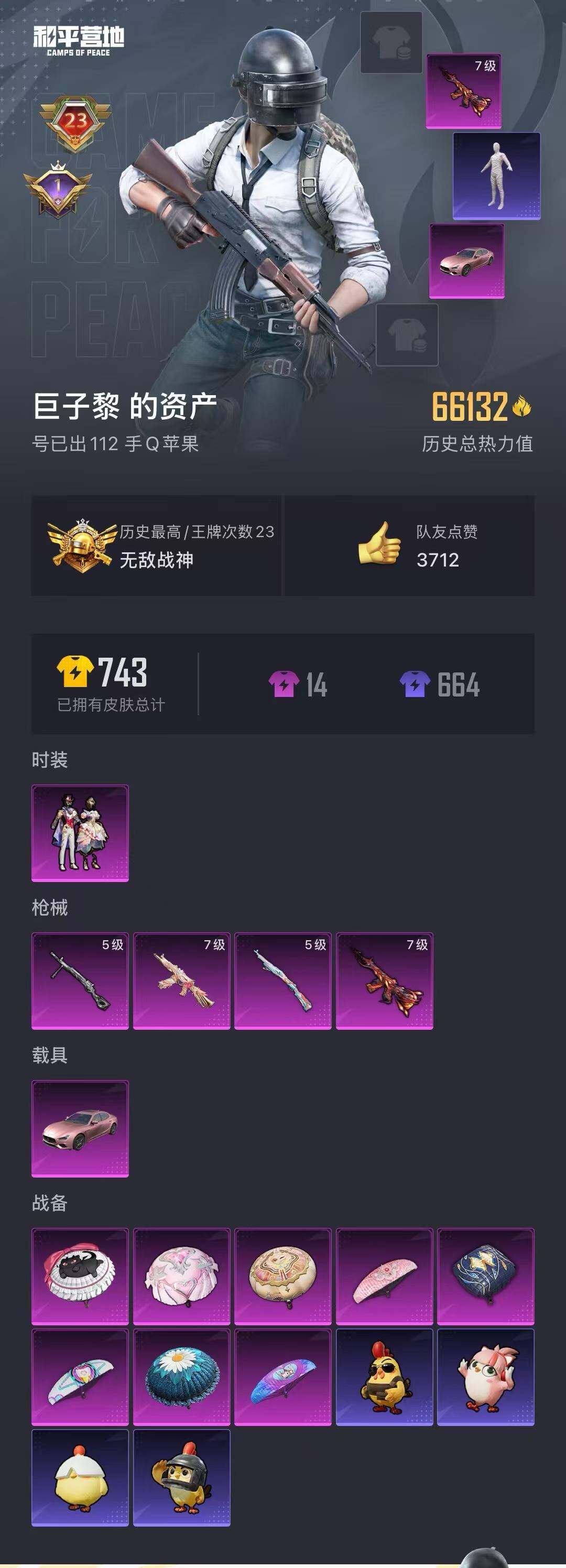 【AZH1357】苹果 手Q【23高印记无敌战神 木乃伊满级风花雪月】-无敌战神框-1粉装-4特效枪-1载具-0粉色飞行器-66132热力值-23王牌印记-151套装-220枪皮