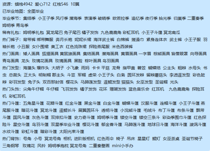 稀有礼包:姆明季礼包 冥龙尾巴 兔子尾巴 橘子发饰