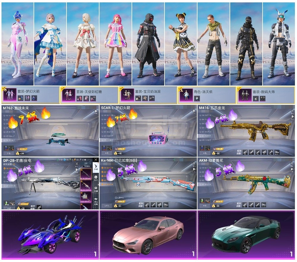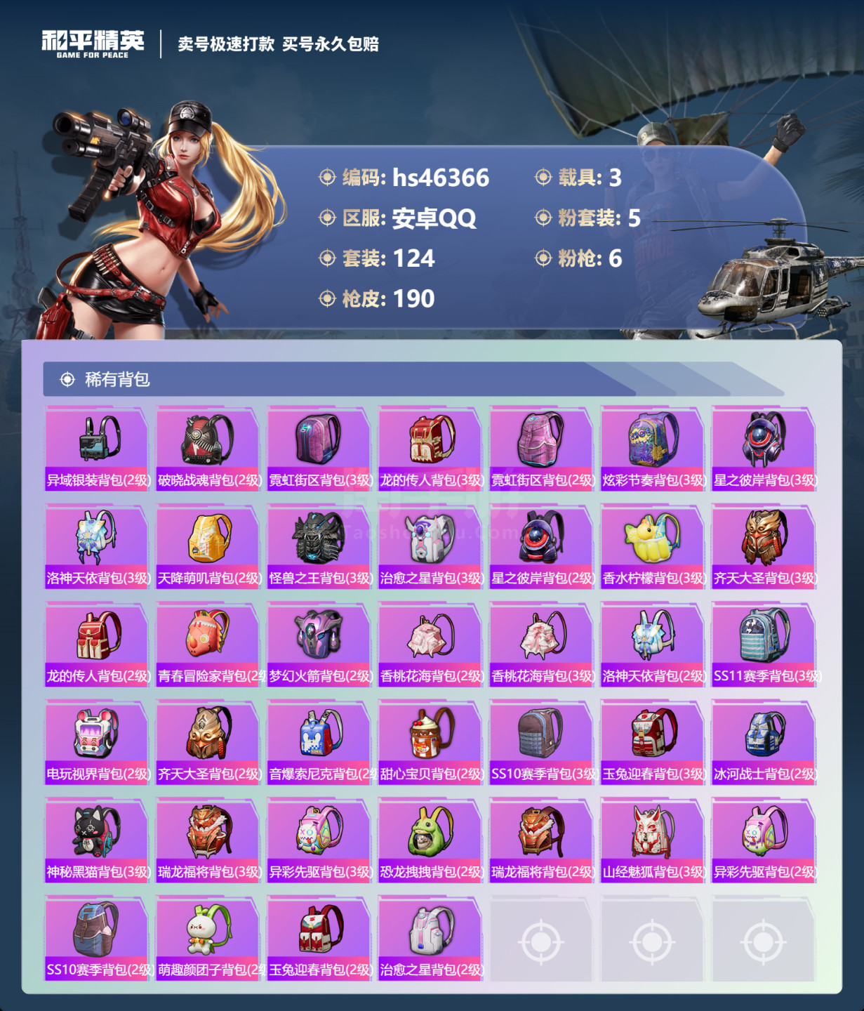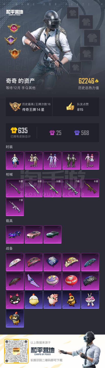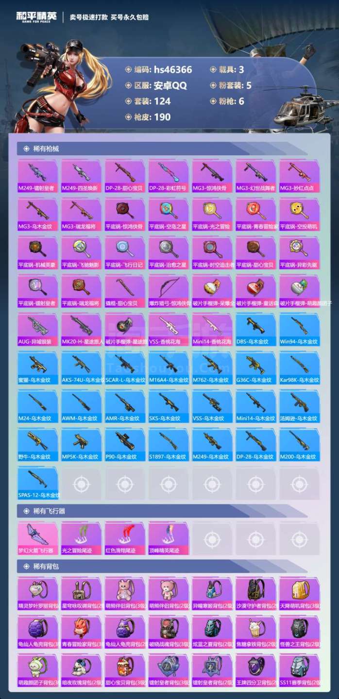 hs46366 安卓手Q-16王牌印记-5粉装-6特效枪-3载具-62246热力值-124套装-19