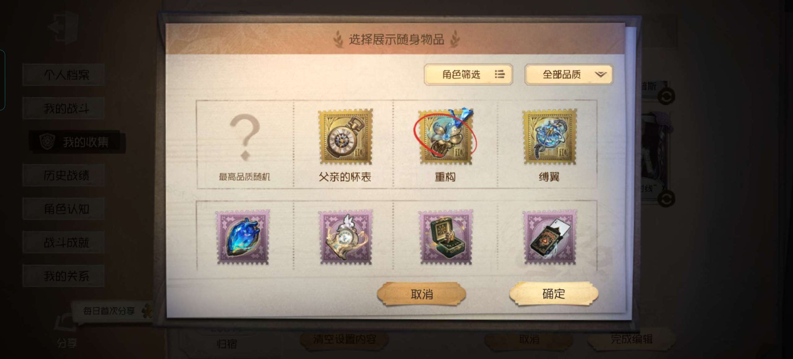 随身物品: