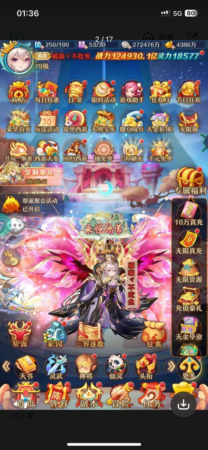 卡级79无敌,星君已经有了,翅膀差一点满图鉴700撒豆卷可以白嫖天金翅,宝石无敌,水晶五千