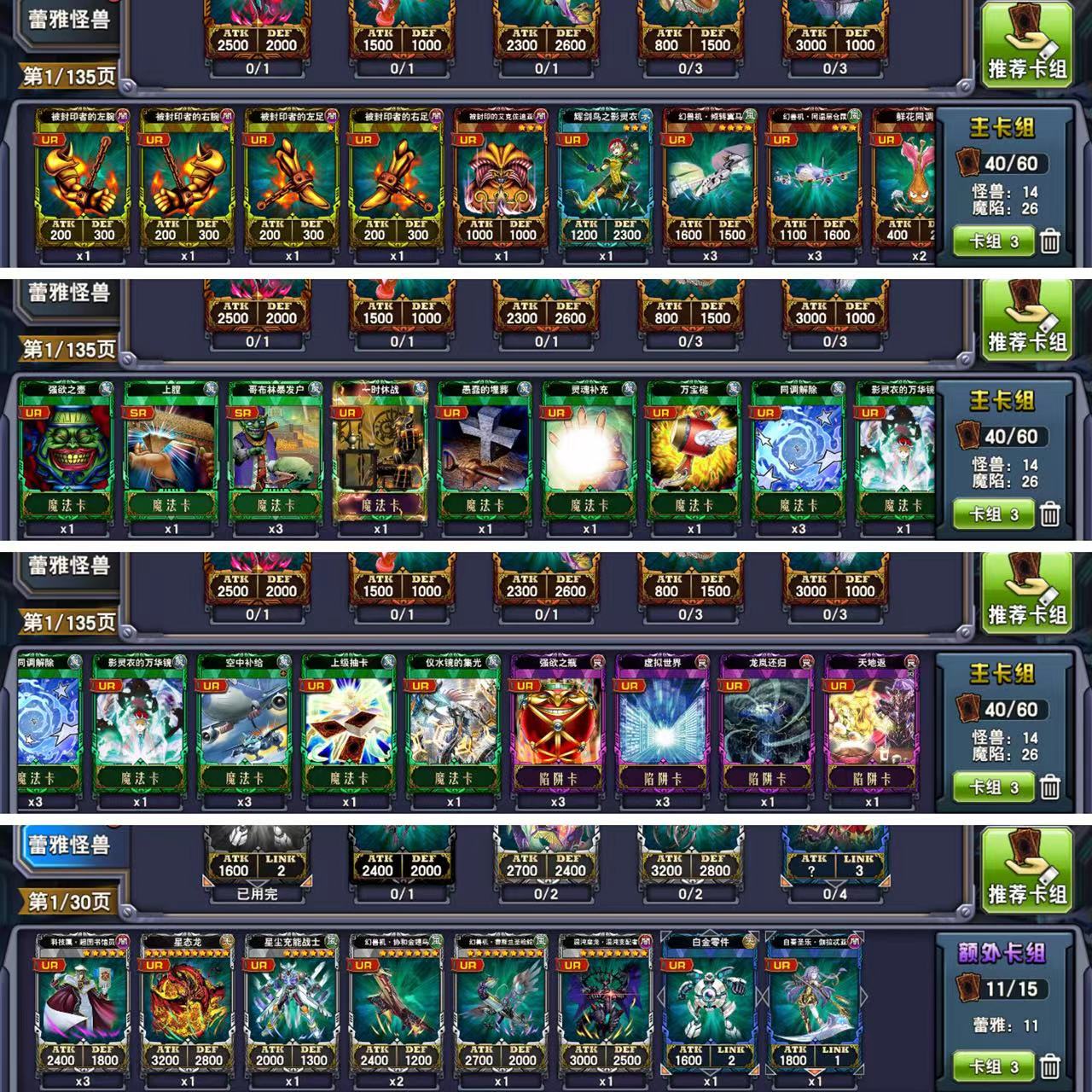 轻松霸区四特权,顶配贴贴,顶配三国,大法师,还有好多旧卡组,3DD2凭依3灵使2万圣印记极星半龙同调星尘,2.8万古代,86超值劵,4259狂欢劵,6400万金币,3813水晶,1610尘,8千多成就