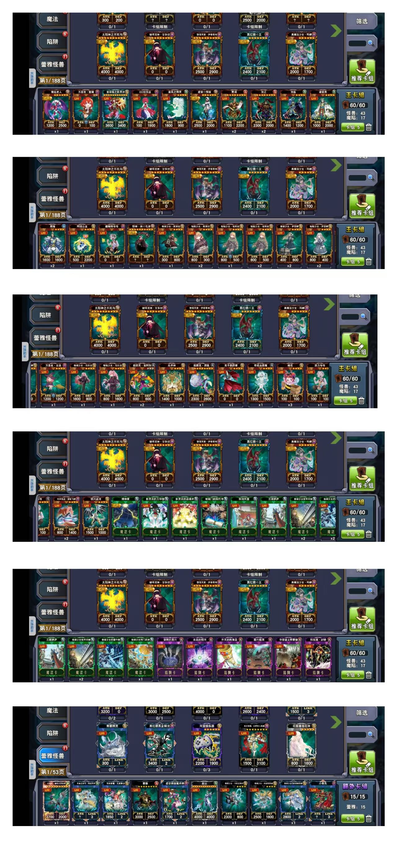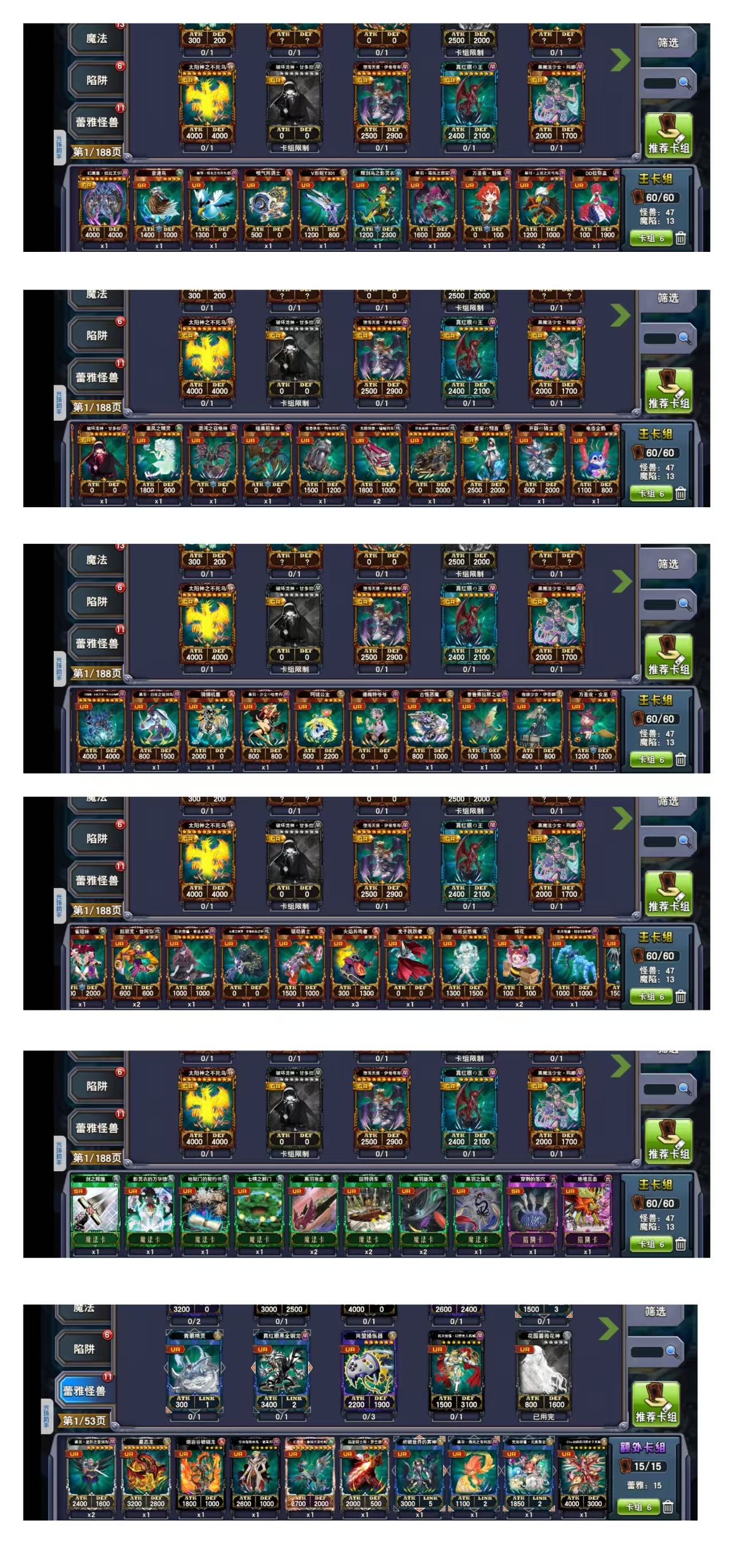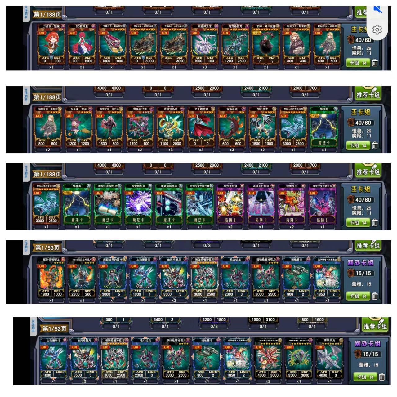 古神邪神虚妄,11铜冠,292金杯,四特权,全GR怪,邪神贴贴,三国,情怀白龙(有喷射龙水贤传白),教义人,枪管,光创三幻神,还有好多旧卡组,6DD4凭依3灵使等实用印记,2千万资源,1.1万成就