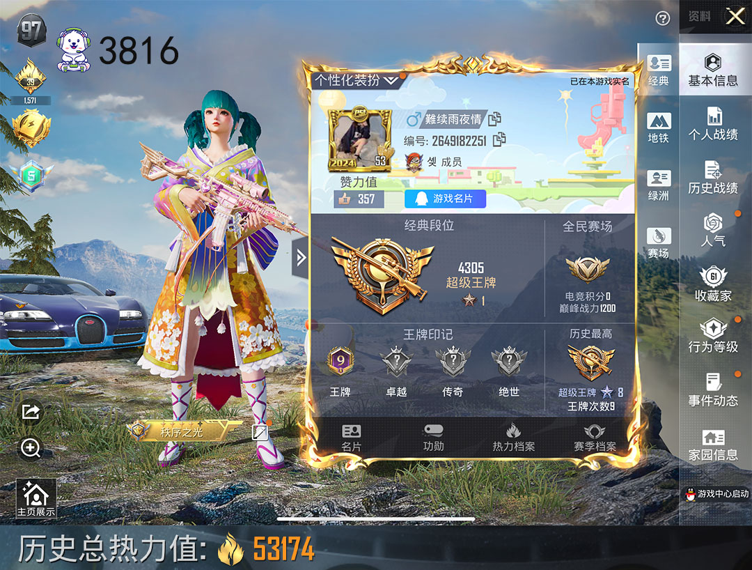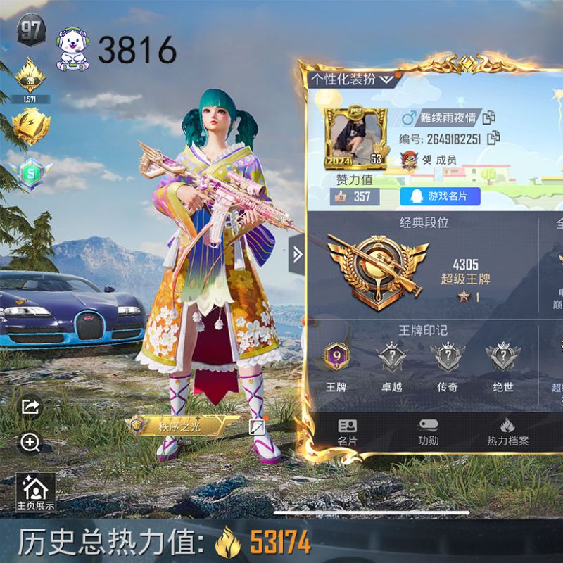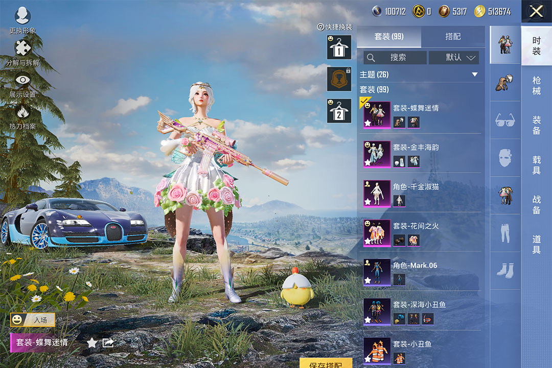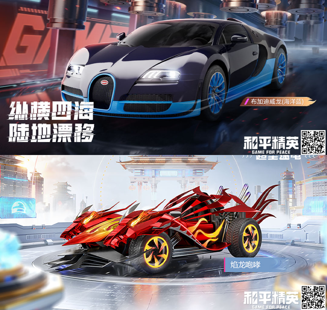 和平精英【苹果QQ】2车10枪4粉花间之火蝶舞蓝蚂蚱深海小丑鱼布加迪