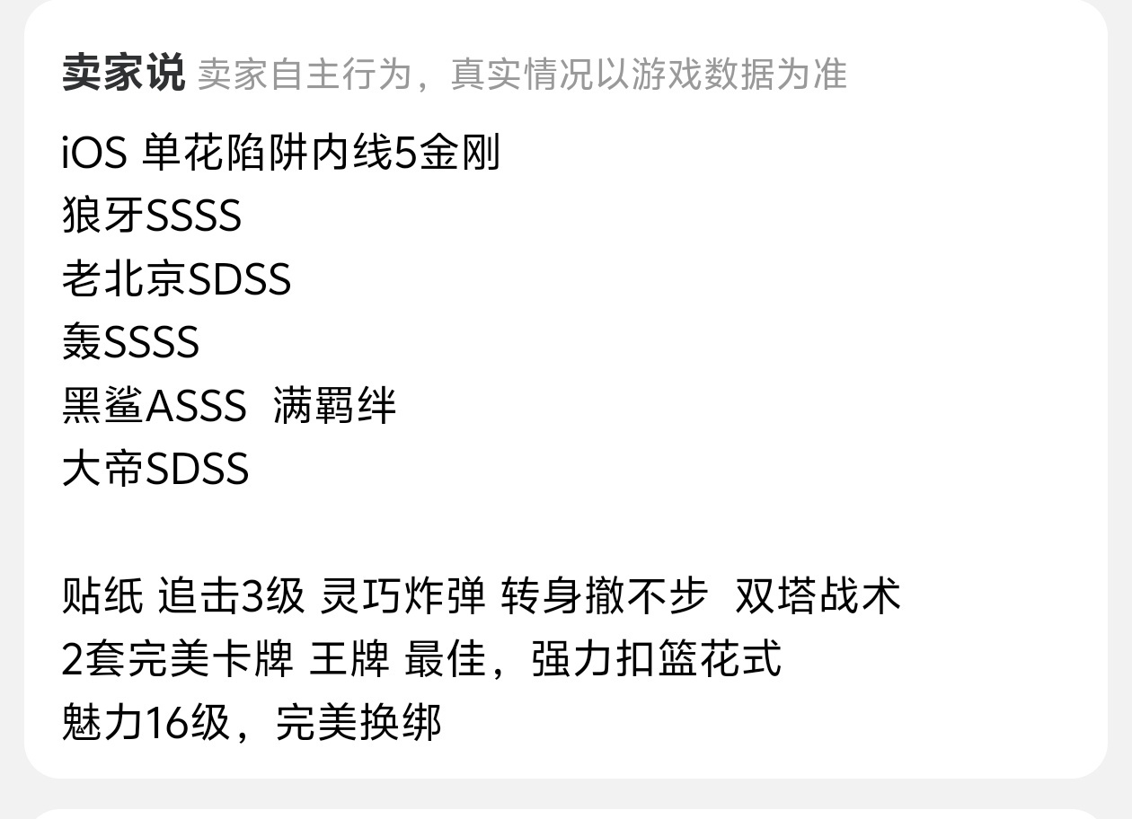 热血街篮【苹果其他】iOS 单花陷阱内线5金刚狼牙SSSS老北京SDSS轰SSSS黑鲨ASSS 满羁绊大帝S