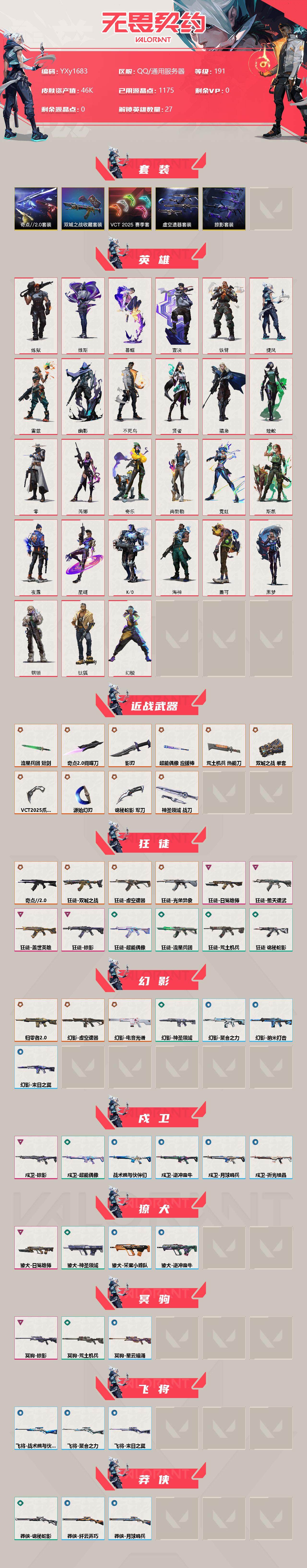 无畏契约【端游】【4.6w库存VCT爪刀.双城套装.奇点蝴蝶刀.七狂徒三幻影】YXy1683【