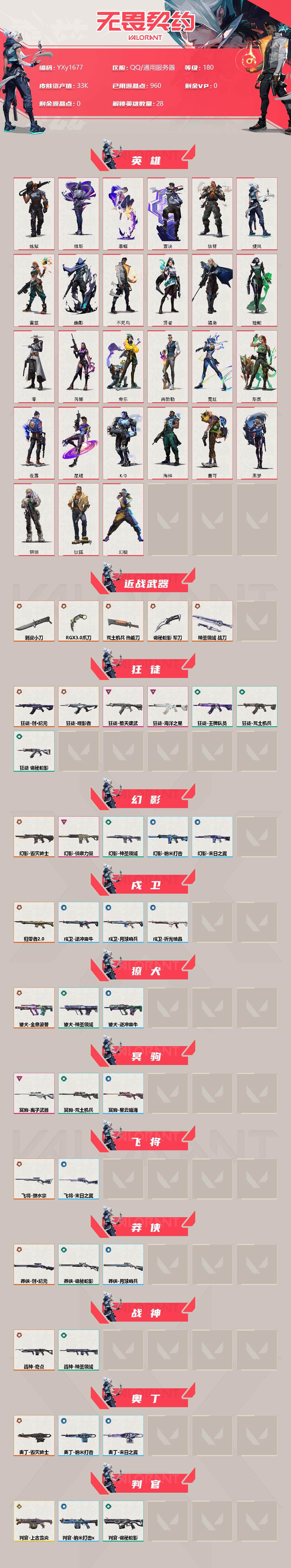 【英雄】:幻棱,炼狱,维斯,暮蝶,钛狐,壹决,铁臂,捷风,雷兹,幽影,不死鸟,贤者,猎枭,蝰蛇,零,芮娜,奇乐,尚勃勒,霓虹,斯凯,夜露,星礈,K/O,海神,盖可,黑梦,钢锁