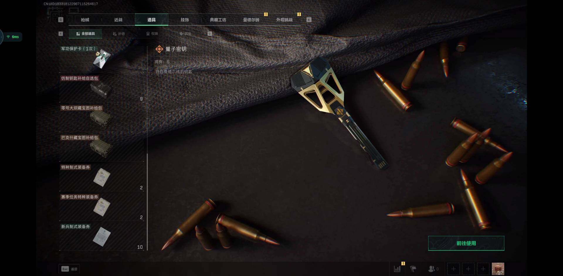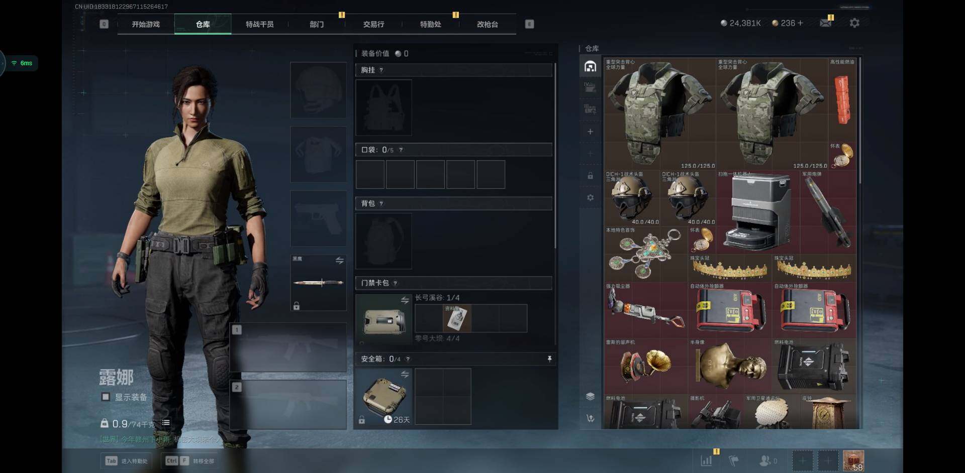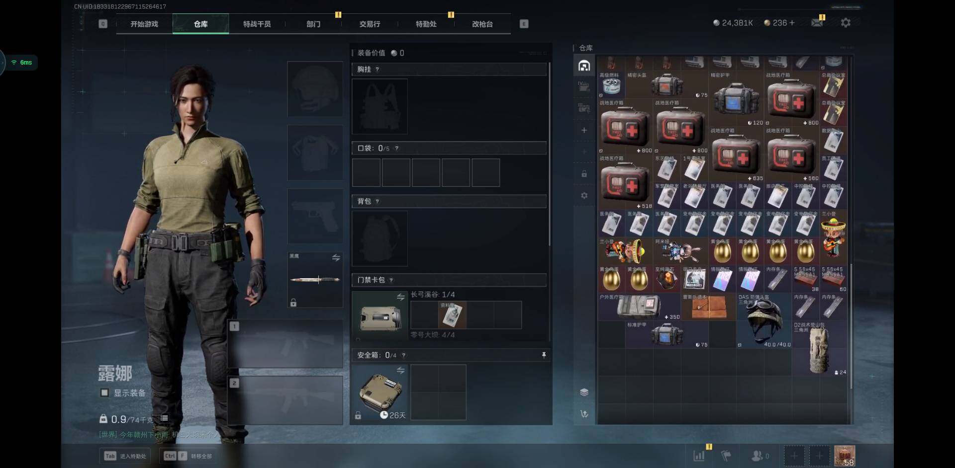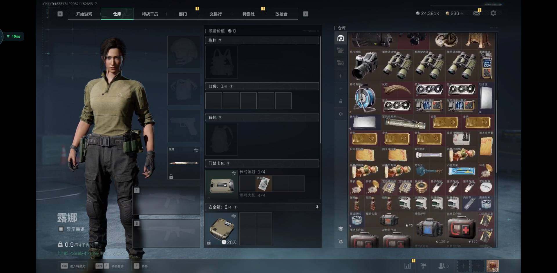 烽火地带段位: 黑鹰 全面战场段位: 列兵 总资产: 99000000 哈夫币