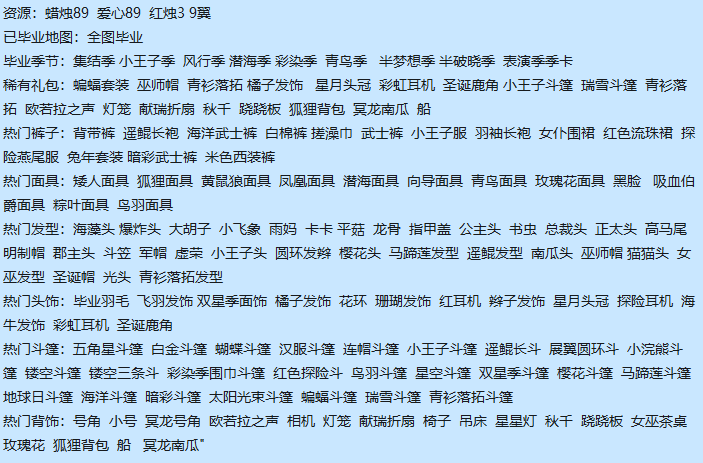 稀有礼包:蝙蝠套装 巫师帽 青衫落拓 橘子发饰 星月头冠 彩虹耳机 圣诞鹿角 小王子