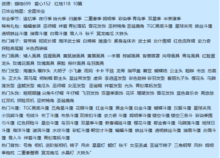 稀有礼包:蝙蝠套装 巫师帽 绊爱 青衫落拓 雪花发饰 巫树犄角 圣诞鹿角 TGC黑