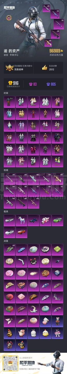 hs46461 苹果手Q-10王牌印记-有战神框-30粉装-13特效枪-7载具-96994热力值-2