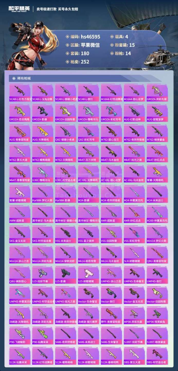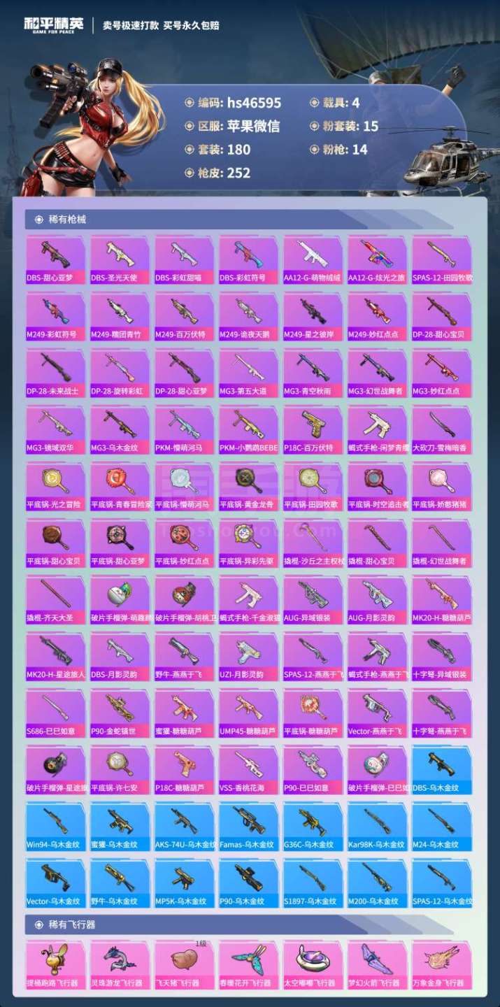 hs46595 苹果微-14王牌印记-有战神框-15粉装-14特效枪-4载具-90532热力值-1