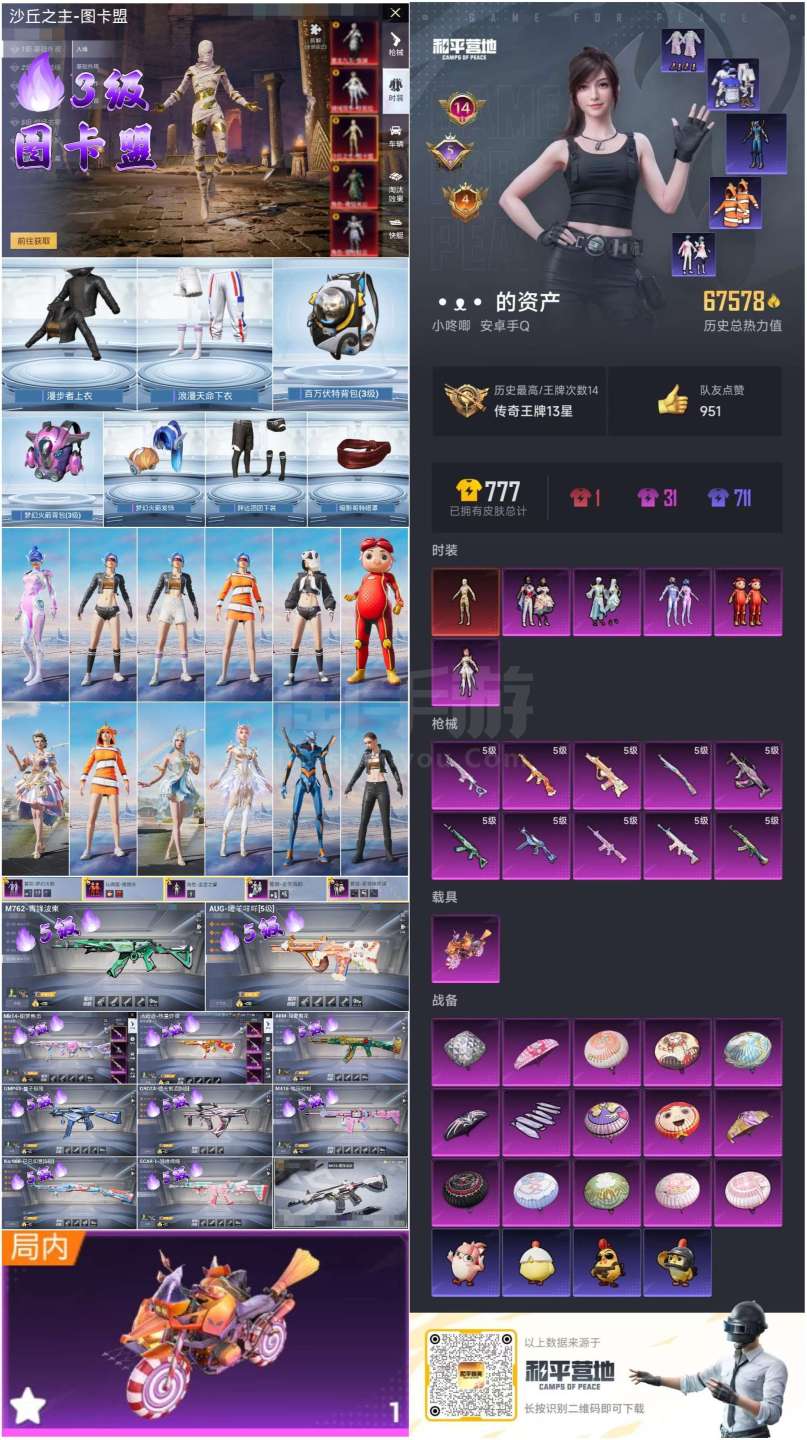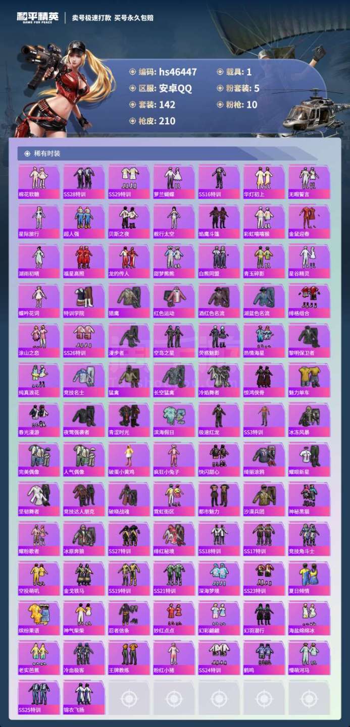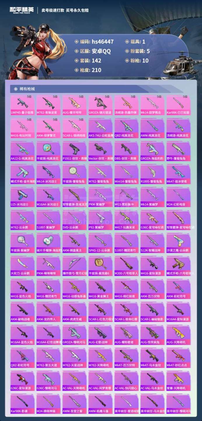 hs46447 安卓手Q-14王牌印记-5粉装-10特效枪-1载具-67578热力值-142套装-2