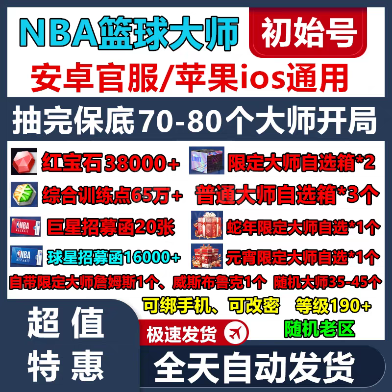 NBA篮球大师【安卓官方】❤️红宝石38000+❤️抽完保底70-80个大师开局❤️